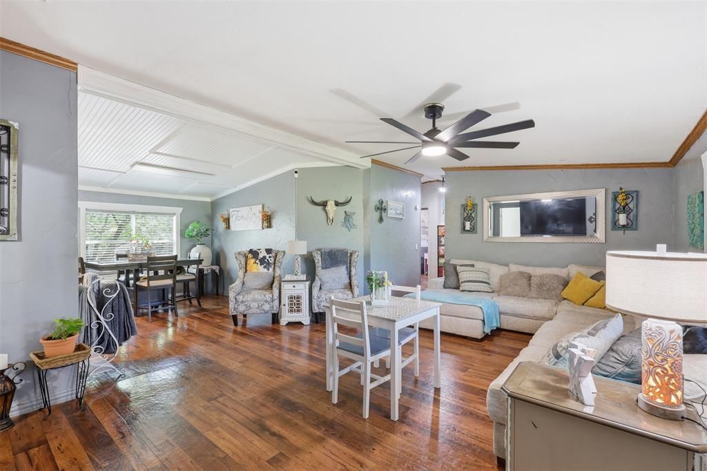 Located at the end of a cul-de-sac, this 4-bedroom, 2-bath home offers approximately 2,240 square feet of living space on a 0.858-acre lot.The floor plan includes two living areas and a dedicated office, providing flexible use of space. The kitchen has been updated and features a center island, modern cabinetry, stainless steel appliances, and a commercial-grade refrigerator.Recent improvements include an updated HVAC system (March 2026). The home also features a metal roof.The primary bedroom includes an ensuite bathroom with updated finishes. Additional bedrooms are appropriately sized and share access to a second full bathroom.Exterior features include a covered front entry, extended driveway, and a large lot with mature trees. The property provides space for a variety of outdoor uses.