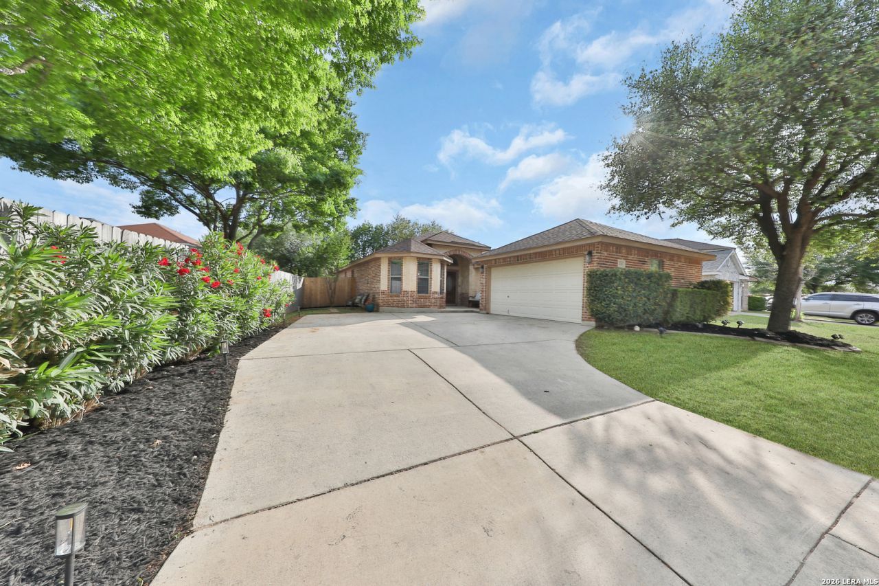 OPEN HOUSE: SAT & SUN, APRIL 11TH & 12TH 1-5PM! Beautifully updated one-story home in the highly sought-after Braunridge community in Helotes! Featuring a beautiful stone-accented exterior with brick on all four sides and a convenient side-entry garage. This well-maintained property offers both style and comfort. Major Upgrades include: New HVAC system (2025), New fence (2025), New kitchen appliances: dishwasher, microwave, stove (2025). Recessed lighting upgrades and new fixtures throughout (2024-2026), Primary bath remodel (2022) and Kitchen remodeled. Step inside to an open and inviting floor plan highlighted by elegant architectural details, including arched entryways, crown molding, tray ceiling, and tall baseboards. The home is tastefully updated with designer interior paint, tile and large plank laminate flooring throughout. The spacious kitchen is perfect for both everyday living and entertaining, complete with recessed lighting, granite countertops, custom cabinetry, and a stylish backsplash. Relax in the serene primary suite, which features a bay window overlooking the peaceful backyard shaded by mature oak trees. The remodeled spa-like bathroom includes a granite vanity, beadboard accent wall, and a generous walk-in tile shower with built-in seating. Enjoy outdoor living at its finest with French doors leading to a covered patio and an expansive concrete entertaining area-ideal for weekend barbecues and gatherings. Additional highlights include concrete walkways on both sides of the home for easy maintenance, freshly mulched beds and the roof was replaced in 2016. Located within walking distance to a dog park and greenspace, and close proximity to shopping, dining, major highways and Lackland AFB. This move-in-ready home offers the perfect blend of convenience and comfort. Schedule a showing today before this one is gone!