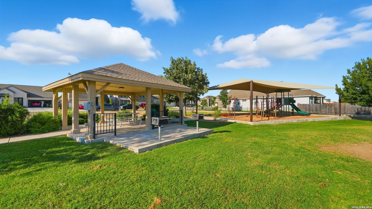 This VERY gently lived in home presents almost like new. You will find its location close to Randolph Brooks AFB as well as nearby schools to be quite convenient. Primary bedroom down with a bathroom shower featuring rainfall showerhead, walk through primary closet straight to the laundry room, where youll find an almost new washer and dryer. Upstairs includes three additional bedrooms (including one with its own en suite bath), and additional living space perfect for office, play room, craft room, etc. Downstairs includes a gorgeous kitchen with enviable kitchen island, breakfast area and dedicated dining area (or office...play room...homeschool area). The backyard is very nicely sized and ready for your outdoor dreams to take flight. Across the street is a small neighborhood playground.