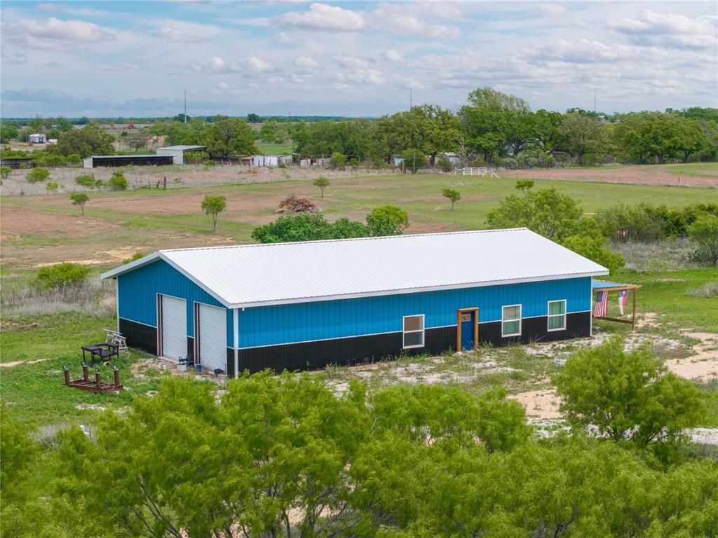 Discover modern living in this beautifully crafted 2-bedroom, 2-bathroom metal-framed barndominium, built in 2024 (per seller). Designed with both style and functionality in mind, this home features an open-concept layout highlighted by impressive 16-foot vaulted ceilings, creating a spacious and airy feel throughout. The contemporary kitchen is a true centerpiece, complete with stainless steel appliances, a large breakfast bar, and ample space for entertaining or everyday living. The generous primary suite offers a private retreat with a walk-in closet and a well-appointed en-suite bathroom. An attached 24’ x 40’ two-bay garage provides incredible versatility, featuring a matching finished floor—ideal for converting some additional space into a third bedroom, office, or additional living space to suit your needs. Situated just one mile west of Bangs and set back off the road, this property offers both convenience and privacy, making it the perfect blend of peaceful living with easy access to town.*Buyer's agent and buyer to verify details and room sizes, boundary lines on photos are estimate.