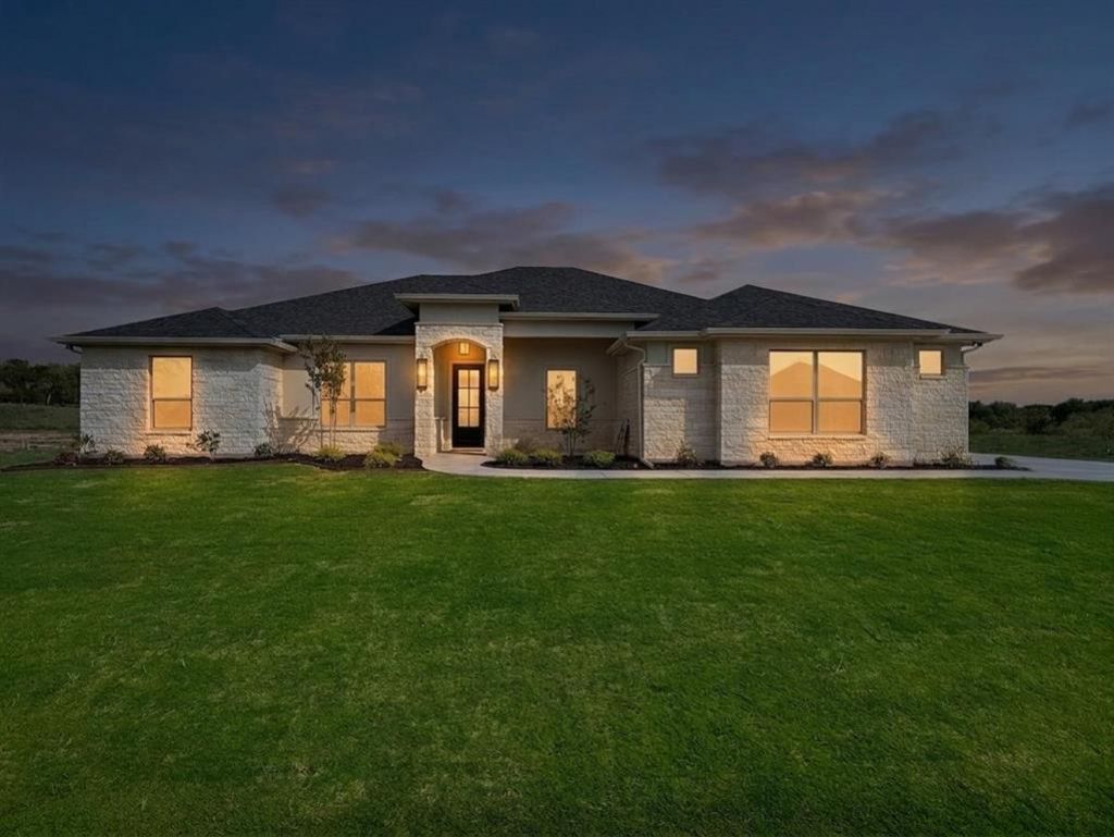 Experience luxury golf course living in this stunning new construction home by BellaVue Homes, perfectly situated on Hole 14 of Squaw Valley Golf Course in highly sought-after Glen Rose, Texas. This beautifully designed 4-bedroom, 3-bath home with an oversized 3-car garage. Step inside to an open-concept floor plan filled with natural light from expansive picture windows, showcasing breathtaking golf course views and a spacious backyard. The living room impresses with soaring 12-foot coffered ceilings and a floor-to-ceiling stone fireplace. The chef’s kitchen is built for both everyday living and entertaining, featuring granite countertops, double ovens, gas range with pot filler, abundant prep space, and a massive walk-in pantry—ideal for those who love to cook and host. Retreat to the luxurious primary suite, complete with a private fireplace and spa-inspired ensuite bath offering dual vanities, a soaking tub, walk-in shower, and a large custom closet with direct access to the utility room for ultimate convenience. A thoughtfully designed split-bedroom layout provides privacy, with a dedicated guest suite and full bath, while two additional bedrooms share a well-appointed bathroom—perfect for family, guests, or a home office setup. Enjoy Texas outdoor living year-round on the expansive covered patio, with ample space to design your dream outdoor kitchen and entertaining area, all overlooking the scenic golf course. Additional premium features include spray foam insulation for energy efficiency, a full sprinkler system, and plenty of room to build a shop or barn—rare flexibility in a golf course community. Located within the top-rated Glen Rose ISD and just minutes from historic downtown Glen Rose, dining, shopping, and outdoor recreation, this home offers the ideal combination of luxury, location, and lifestyle. Don’t miss your opportunity to own a premier golf course home in one of Glen Rose’s most desirable communities.