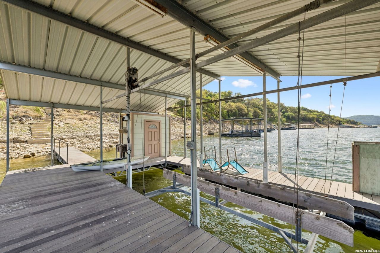 150 of Lake Travis waterfront with covered floating dock and private setting near Cedar Park. This updated cabin preserves its original lake charm while offering the flexibility buyers are looking for. Outdoor spaces drive the experience with a shaded lakeview deck, large stone fireplace for evening gatherings, and dedicated grilling area positioned to capture wide views of the water. The covered floating dock provides direct lake access for boating, fishing, and relaxing days on the shoreline. Inside, the home features wood trim accents, abundant windows, and a decorative stone fireplace that creates a comfortable lodge-style atmosphere. Sleeping areas face the lake, keeping the connection to the outdoors front and center. The property also offers long-term opportunity-use it as a weekend getaway or guest quarters while planning a future home on the upper portion of the lot. Mature trees and a wooded reserve across the street enhance the sense of privacy, while nearby Cedar Park provides convenient access to shopping, dining, and everyday essentials. Optional HOA membership includes lake amenities and boat ramp access. Private setting. Dock access. Lake lifestyle.