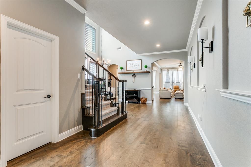 Beautifully maintained 4-bedroom, 3.5-bath home with a backyard oasis in the highly desirable Woodridge Estates. This thoughtfully designed home offers a versatile floor plan featuring a first-floor study with coffered ceilings and a built-in Murphy bed—ideal as a home office or potential fifth bedroom. The open-concept living area showcases soaring ceilings, abundant natural light, a stone fireplace, and a stylish accent wall, creating an inviting space for both everyday living and entertaining.The chef’s kitchen is well-appointed with granite countertops, a large center island, stainless steel appliances, a butler’s pantry, breakfast nook, and ample cabinetry and workspace. The first-floor primary suite provides a private retreat with a spacious walk-in closet, dual vanities, and a separate jetted soaking tub and shower. Upstairs, you’ll find a generously sized game room, dedicated media room, three additional bedrooms, and two full baths, including an updated Jack-and-Jill layout that connects 2 bedrooms. All secondary bedrooms feature walk-in closets, offering plenty of storage.Step outside to your private backyard oasis, complete with a kidney-shaped pool, flagstone decking, and both open and covered patio spaces—perfect for relaxing or entertaining guests. Additional highlights include a three-car garage with upgraded epoxy flooring. Conveniently located near Lake Lewisville with easy access to major employers, shopping, dining, and entertainment. Home is ready for move in and most furniture is negotiable.