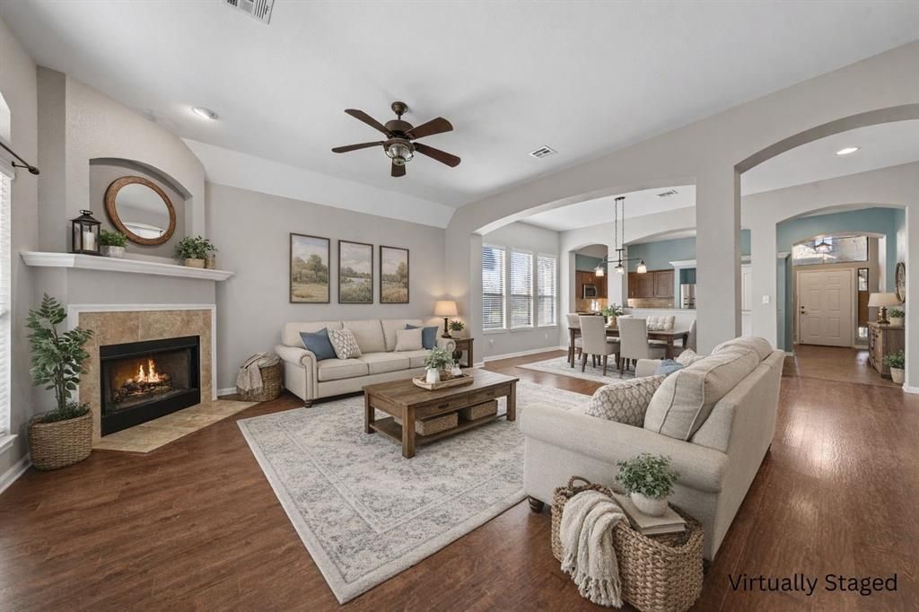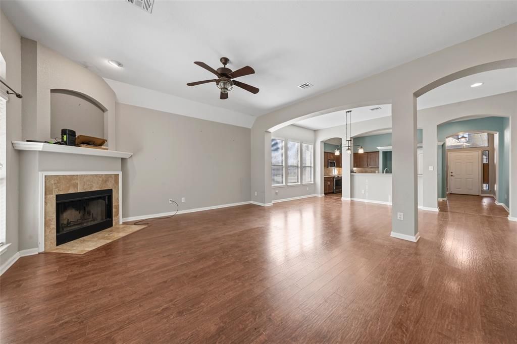 Welcome home to this inviting Falcon Point property located in the highly sought-after China Spring ISD. This well-designed home offers an open and functional floor plan with beautiful laminate wood flooring and a cozy wood-burning fireplace that anchors the main living space. An office nook provides the perfect spot for working from home or homework time, while the versatile extra room can easily serve as a second living area, formal dining room, or flex space to suit your needs. The open layout flows seamlessly into the kitchen and living areas, making it ideal for everyday living and entertaining. The isolated primary suite offers a peaceful retreat with dual vanities and ample space to unwind. Energy-efficient solar panels add value and help reduce utility costs, making this home as practical as it is comfortable. Enjoy outdoor living with a large covered back patio—perfect for relaxing or hosting gatherings—as well as a welcoming front porch that adds to the home’s curb appeal. Residents of Falcon Point enjoy access to community amenities including a pond, playground, basketball court, picnic tables, and park, creating a neighborhood designed for both relaxation and recreation. This home combines comfort, versatility, and community living in a location you’ll love.