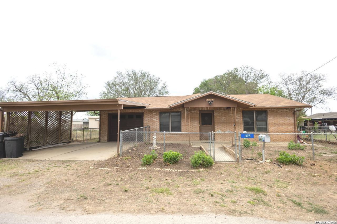 This spacious 3 bedroom 2 bath home offers over 2300 sq. feet in an area that is close to local churches in the heart of Devine. With two separate living areas, there is plenty of space for everyone. The oversized master suite ensures a private retreat for parents, while the durable all-brick exterior and newer 2 year old roof provide peace of mind. Dual central air and heat systems keep the home comfortable in every season! The large fully fenced yard is perfect for children and pets to play safely and the detached storage room adds extra functionality for tools, hobbies, or seasonal items. There is an attached one car garage and a 2 car carport! Priced to sell!