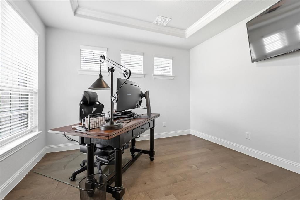 Step into comfort and elegance in this exceptional 5-bedroom, 3-bathroom home located in the highly desirable Harvest community within award-winning Argyle ISD. Bathed in natural light, the home showcases expansive windows and soaring ceilings that create a bright, open atmosphere throughout.At the heart of the home, a stunning oversized quartz island anchors a chef-inspired kitchen—perfect for entertaining and everyday living. The flexible floor plan includes a private study, a spacious upstairs loft, and a dedicated media room ideal for movie nights or relaxing with family.Unwind on the covered patio overlooking a fenced, private backyard—an inviting space for both quiet evenings and outdoor gatherings. Additional features include a rare 2.5-car garage, upscale finishes, and meticulous upkeep that truly set this home apart.Enjoy luxury living in one of North Texas’ most sought-after communities, complete with scenic jogging trails, a clubhouse, park, and private pond.