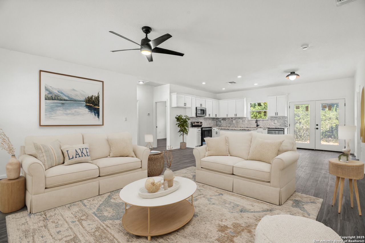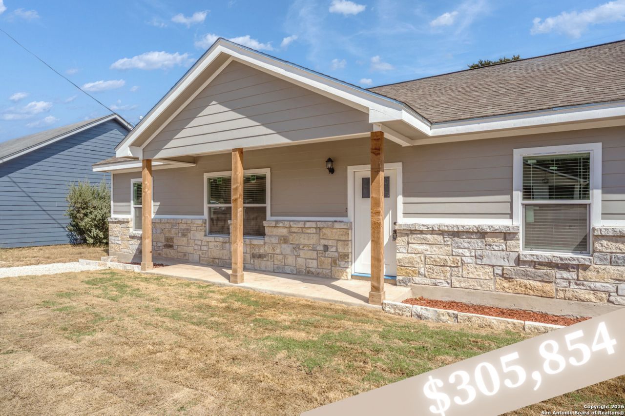 Brand NEW home is READY for its first owner! This beautiful build features NEW AC, water heater, appliances, and roof, along with a spacious open floor plan. The private primary suite with double vanity is separated from the other bedrooms for added privacy. Gorgeous detailed finishes blend lake life with modern design! Just a short walk to neighborhood amenities and boat ramp, as well as minutes from restaurants, coffee shops, schools, and community fun! Dont miss out on a great build, great home, great neighborhood and minutes away from New Braunfels, Wimberly, San Antonio, and more! 2-10 Home Warranty and $1500 towards closing costs or rate buy down!