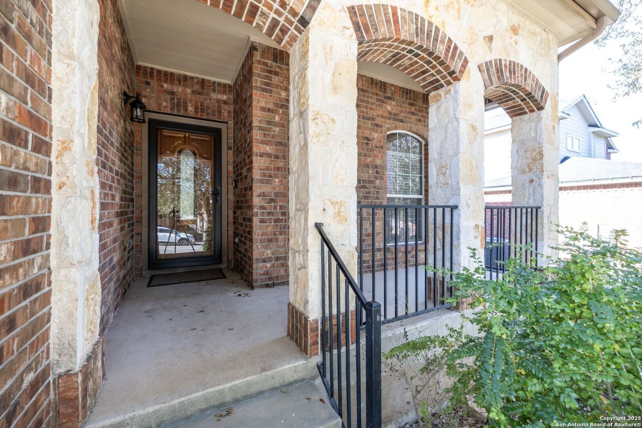 Ideally located in New Braunfels with easy access to schools, everyday conveniences, and community amenities, this spacious 5-bedroom, 3.5-bath home combines a functional layout with thoughtful updates and timeless design. Inside, 9-foot ceilings, upgraded fixtures, custom tile accents, and a wrought iron railing create inviting living spaces. The kitchen features maple cabinetry, granite countertops, gas appliances, cabinet rollouts, and extensive pantry shelving. Living areas are enhanced by drapery throughout, commercial-grade LVT flooring upstairs, and new carpet on the stairs and upper-level bedrooms. The primary suite offers a bay window, a custom closet, and a beautifully updated en-suite bath with a stunning glass walk-in shower. Secondary bedrooms and baths provide privacy and flexibility, including an upstairs bath with a new vanity and exceptional storage from built-in closets and upstairs built-in cabinetry. Extensive improvements include a new roof with a 50-year transferable warranty, foundation bracing with transferable warranty, added subflooring upstairs, two water heaters, a sprinkler system with new heads, a security system, central vacuum system, new gutters with leaf guards, security doors, and a new wood fence. Outdoor living features a covered front porch, a raised cement patio in the backyard, a large three-car garage, and thoughtful exterior updates such as a new front step and front tree well. Situated on a quiet cul-de-sac with a neighborhood park and pool just steps away, this meticulously maintained home is move-in ready and designed for effortless living!