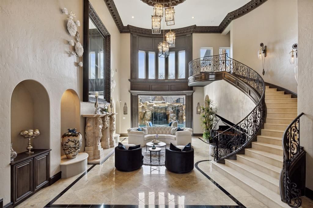 Stunning 13,922 sq ft estate on nearly 2 acres in Southlake’s prestigious Carroll ISD. Originally built in 2010 and fully renovated in 2021 with exquisite artisan finishes and Vanderpump Alain design accents. This 7-bedroom, 12-bath residence offers extraordinary luxury, including a first-floor primary suite with spa-like bath and a spectacular two-story boutique closet.Designed for both grand living and resort-style relaxation, the home features a grotto spa and pool that flows from indoors to outdoors, private tennis court, and a 2-bedroom guest house. Architectural details, custom craftsmanship, and refined interiors create a one-of-a-kind Southlake castle—an unparalleled retreat in an award-winning community.