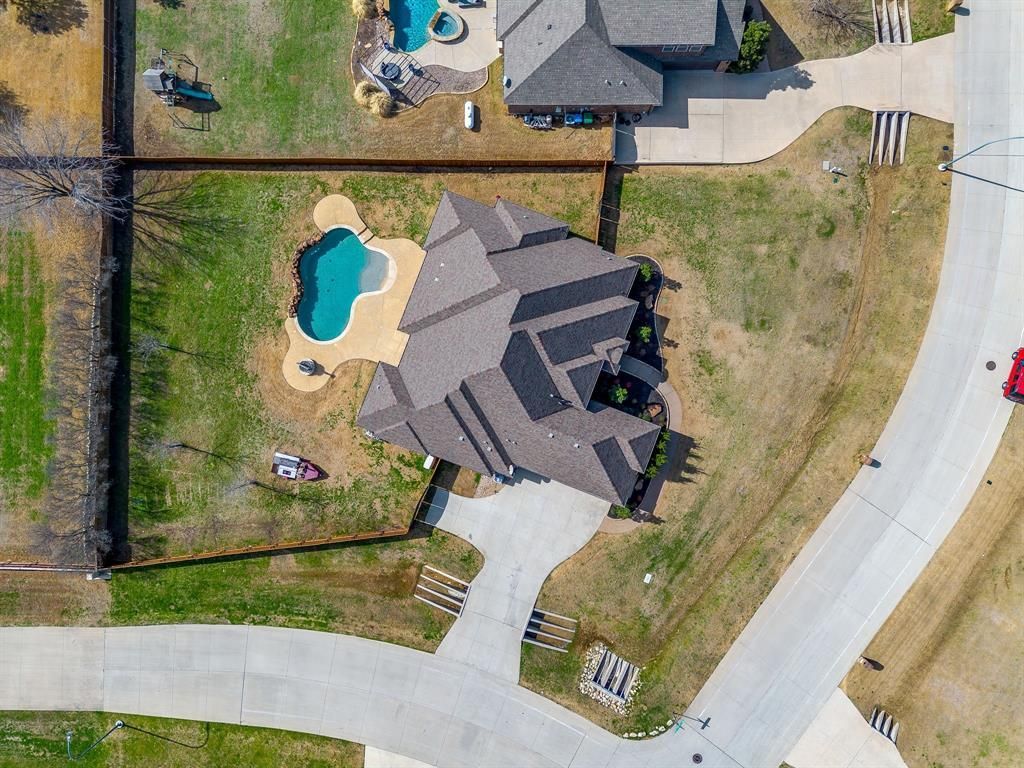 This home not only offers the space and privacy you've been dreaming of, but also has an incredible. long list of upgrades and updates. The large, .62 acre corner lot provides ample space for pets and kids to run, while the adults enjoy the shade of the oversized covered patio next to the inviting pool. You'll feel miles away - but are only a 20 minute drive to downtown Fort Worth - and in a great location to commute anywhere in DFW. The interior of the home offers a long list of custom features - like hand-scraped, solid hard wood floors through all living areas and bedrooms, custom cedar beams and a hand crafted, stone fireplace. The single story floor plan is ideal with a split bedroom arrangement. The primary suite enjoys views of the spacious back yard while the secondary bedrooms and guest suite all occupy their own, separate wings. High ceilings give the home a spacious feeling and provide ample natural light - all while maintaining a cozy, welcoming vibe. The kitchen is the star of the show with space to entertain a crowd. You'll appreciate the gas cooktop, double ovens and walk-in pantry - all accented by custom cedar beams and stonework. The secondary game room or living space offers a great spot to watch a movie or gives kids a spacious play zone. Recent updates include a luxurious primary bath makeover with a walk in double shower and free standing tub. The jack & jill bathroom features new high-end marble tile and gold fixtures. Other updates include: full spray foam encapsulation; new HVAC & dehumidifier system; recirculating tankless water heater system; 26kw automatic generator; new pool equipment; 500 gallon propane tank; smart switches throughout home; electric car charger. So many great upgrades - current owner has spent over $100,000 on improvements to the property in the last 3 years. This is an incredible opportunity for a new buyer!