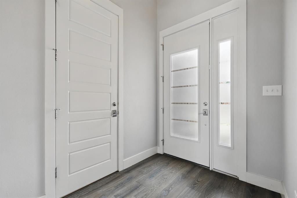 Don't miss out on this stunning contemporary home on an oversized private lot in a great south Denton location! It's just minutes from UNT, the historical downtown square and has easy access to I-35. Beautiful architectural details in this custom built home offers 4 generously sized bedrooms, 3 full bathrooms, 1 living area and an open floor plan. Unique contemporary fireplace and wood beams offer spectacular focal points in the main living room. An abundance of windows offer tons of natural light. Additional amenities include granite counters in kitchen and primary bath, stainless steel appliances, extended kitchen island for breakfast bar, 42in custom kitchen cabinets, upgraded vent a hood and upgraded laminate floors throughout main living areas. Secondary primary bedroom, game room or mother in law suite has a separate office space with built in desk and craft table, large storage closet and ensuite bath. Primary bedroom is split from other bedrooms and features a custom built closet and bath with separate shower and tub. Oversized garage with storage and more! 17 SEER HVAC condenser replaced in 2024 and indoor unit in 2026. Refrigerator, washer and dryer remain with house.