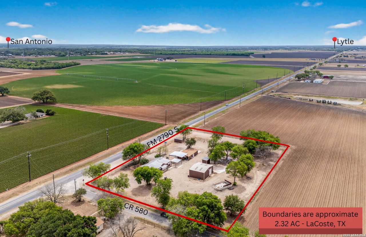 Prime commercial opportunity on FM 2790 S with excellent visibility and access. Situated on a spacious 2.32-acre hard corner tract, this fully fenced property offers three gated entrances and a versatile setup ideal for a trade business such as electrical, plumbing, HVAC, welding, or similar operations. Improvements include an office, shop with lift, workshop, two storage buildings, exterior bathroom, and a large yard with plenty of room for equipment, vehicles, materials, or future expansion. Centrally located with convenient access to LaCoste, Castroville, Lytle, and San Antonio, this property is positioned on a major access road in a high-function, high-convenience location.