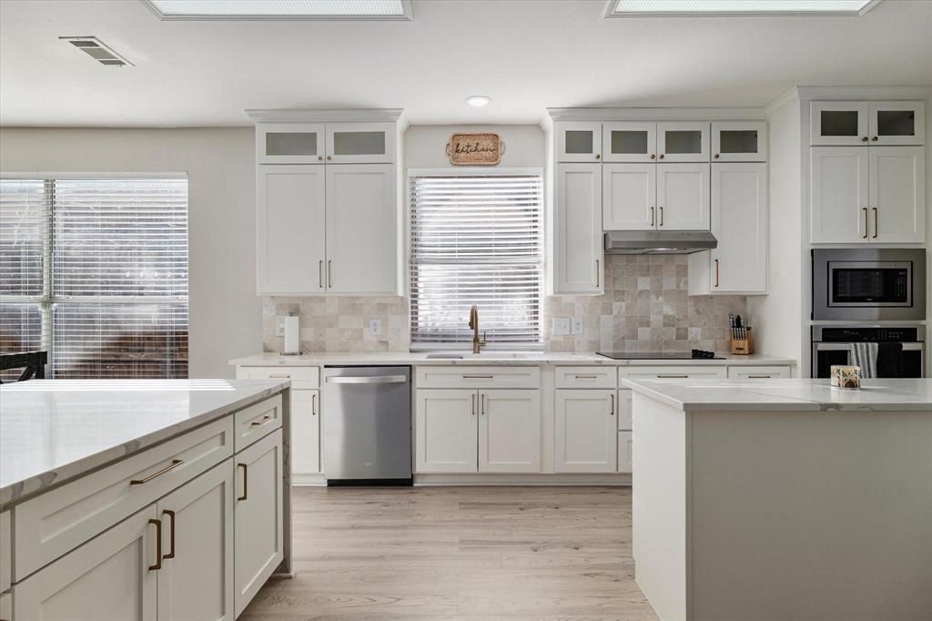 Just a quarter of a mile walk to Lewisville Lake, located in North Lewisville and a 5 min drive to Highland Village, a quiet and welcoming neighborhood this 3243 sq ft, 5 bedroom 3 bath is a must see. Featuring vaulted ceilings and plenty of space to entertain. Lower level has been fully updated with tile flooring throughout and a large kitchen with two islands. Full guest or mother in law suite on the first floor. Upstairs master and three bedroom. New HVAC 2025. Foundation 2024 with lifetime warranty.