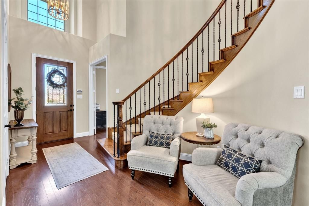 Gorgeous executive home in Marshall Ridge. Thoughtful floor plan, made for entertaining, features spacious kitchen overlooking large living area, dedicated office makes working from home a breeze and private primary suite and beautifully updated bath with separate vanities, huge shower and stand alone tub. Upstairs you'll find 3 secondary bedrooms with 2 full baths, a large loft area and separate game room.Three car garage provides plenty of space for vehicles, toys or a workshop. Gather around the gas powered, stone fire pit or under the pergol and enjoy the outdoor kitchen with built in grill and Primo XL ceramic smoker. Marshall Ridge features an amenity center, community pools, a gym, meeting room and playground. Ridgeview Elementary is in the neighborhood. Easy access to Hwy 377, I35, 170, 114 and DFW airport. Shopping and dining are close by