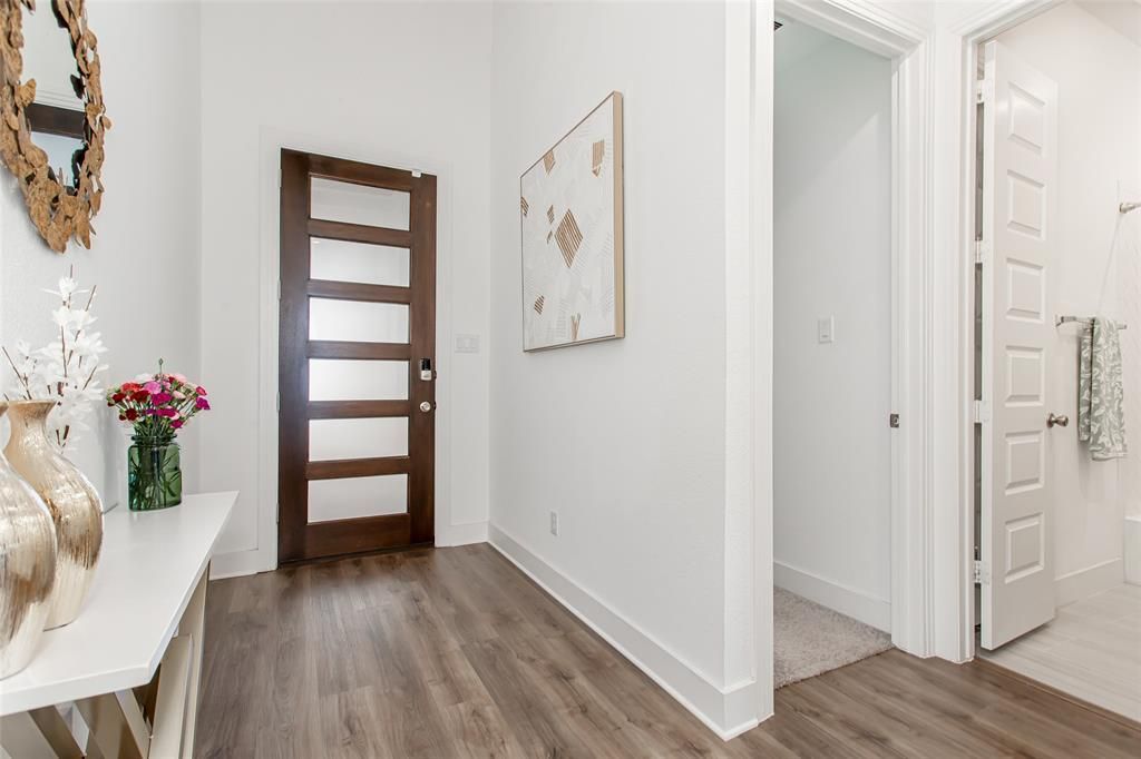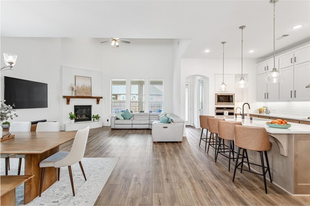 Seller offering $10,000 concession for rate buy down or closing costs with acceptable offer. Primary + secondary bedroom downstairs - Quartz kitchen with oversized island - Game-media room + covered patio. Highland Home in Sandbrock Ranch with 4 bedrooms, 4 baths, and a 2-car attached garage. Open-concept layout with a high-ceiling living room, electric fireplace, dining area, and kitchen with quartz countertops, built-in stainless appliances, a 5-burner gas cooktop, large island, abundant counter space, and storage. Main first-floor living areas feature luxury vinyl plank flooring, plus 8-foot interior doors, 6-inch baseboards, and wrought-iron stair railing. Primary suite and secondary bedroom are on the main level; upstairs includes two additional bedrooms with baths and a combined media and game room. Covered patio extends the living space for outdoor dining or relaxing. Sandbrock Ranch amenities include the Carriage House amenity center, fitness center, resort-style pool, splash pad, dog park, treehouse playground, stocked fishing lakes, event lawn, and miles of walk and bike paths. Sandbrock Ranch Elementary is within the community, and access to Highway 380 and the Dallas North Tollway extension connects to Old Town Aubrey, Gates of Prosper, H-E-B Prosper, Universal Kids Resort in Frisco, and The Star District in Frisco. Review the 3D interactive tour and floor plan for layout, room flow, and space planning before your visit.