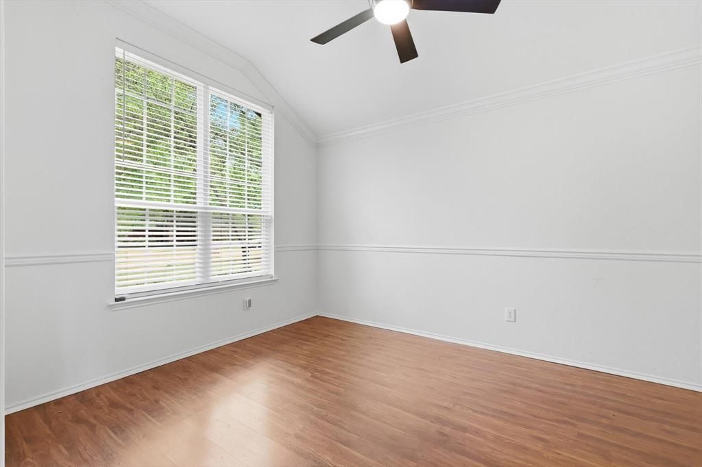 Don't miss this 1 story with 4 bedrooms plus an office in a quiet, established neighborhood with mature trees & no HOA. Home feeds to highly sought after Hawk Elementary, Crownover Middle School and Guyer High School. Inviting entry leads to a private office with French doors that can double as extra living space or a playroom. Bright kitchen offers upgraded stainless steel appliances including a refrigerator, 42-inch cabinets, and a large pantry, all opening to a spacious living room with a gas fireplace. Split primary suite has dual sinks, garden tub, separate shower & walk in closet with 3 levels of rods to maximize storage space. Neutral colors & finishes throughout the home. Covered deck in backyard is the perfect place to relax after a long day. Windows replaced in 2023, HVAC unit and ducts replaced 2022 with surge protection added in 2025, Hot water heater replaced in 2022 & Vector Home Security System installed 2021 with window sensors, outside door sensors, 2 glass breakage detectors & 2 outdoor security cameras.