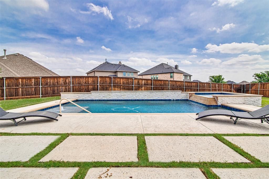 Like-NEW, beautifully designed 4-bedroom, 3-bathroom home in the sought-after M3 Ranch community set on a generous QUATER-ACRE lot with POOL. This single-story layout features rich wood flooring, an open living area with a fireplace, and a stunning kitchen with white quartz countertops, vent hood, custom cabinetry, double-oven and a gas five-burner cooktop.The private primary suite offers a peaceful retreat with dual vanities, oversized shower, and a 3 tier spacious walk-in closet. Three additional bedrooms with walk-in closets, a dedicated media room, formal dinning room, and office add valuable functional spaces that suit today’s lifestyle.Enjoy a 30’ x 15’ modern pool and luxurious spa, designed for year-round use with heating, waterfall features, and state-of-the-art pool equipment.A covered patio provides the perfect space for relaxing or entertaining outdoors in comfort and style.Located in top-rated Mansfield ISD district. This home is just moments from H-E-B, parks, greenbelts, walking trails, playgrounds, and community ponds. A truly exceptional home in one of Mansfield’s premier communities move-in ready and beautifully appointed. MUST SEE!