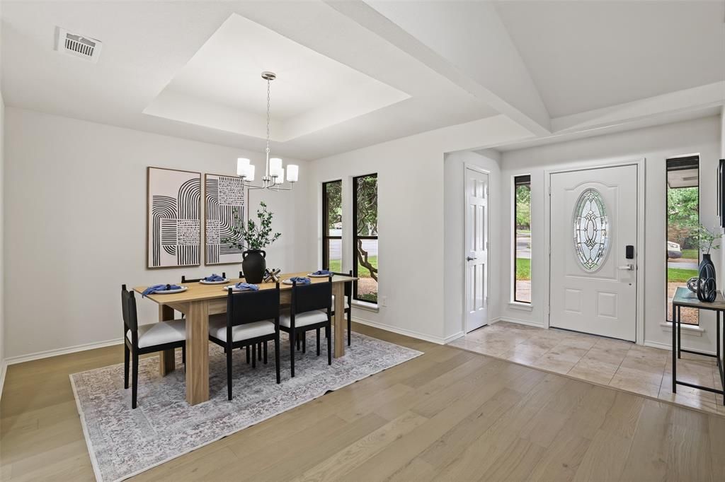 Beautifully updated five-bedroom, single-story home nestled on a serene creek lot in the heart of North Dallas. Thoughtfully designed with an open, light-filled layout, this home offers both comfort and versatility for modern living. The expansive main living area features a dramatic floor-to-ceiling brick fireplace and a spacious wet bar—perfect for entertaining. The fully updated kitchen impresses with custom cabinetry, striking quartz countertops, a gas range with double oven, and dual dishwashers for added convenience. The dining room offers peak flexibility with the ability to expand to seat 12-14 guests or more, if the occasion calls for it.Retreat to the stunning, newly remodeled primary suite bath, complete with a large walk-in rain shower and spa-like finishes. A secondary living area with a wall of windows overlooking the creek provides the perfect space for a home office, media room, or flex living. The flexible five-bedroom floor plan includes a separate wing with private entrance—ideal for an in-law suite, nanny quarters, or guest retreat. Situated on an oversized corner lot, this home offers privacy, mature surroundings, and an abundance of natural light throughout.