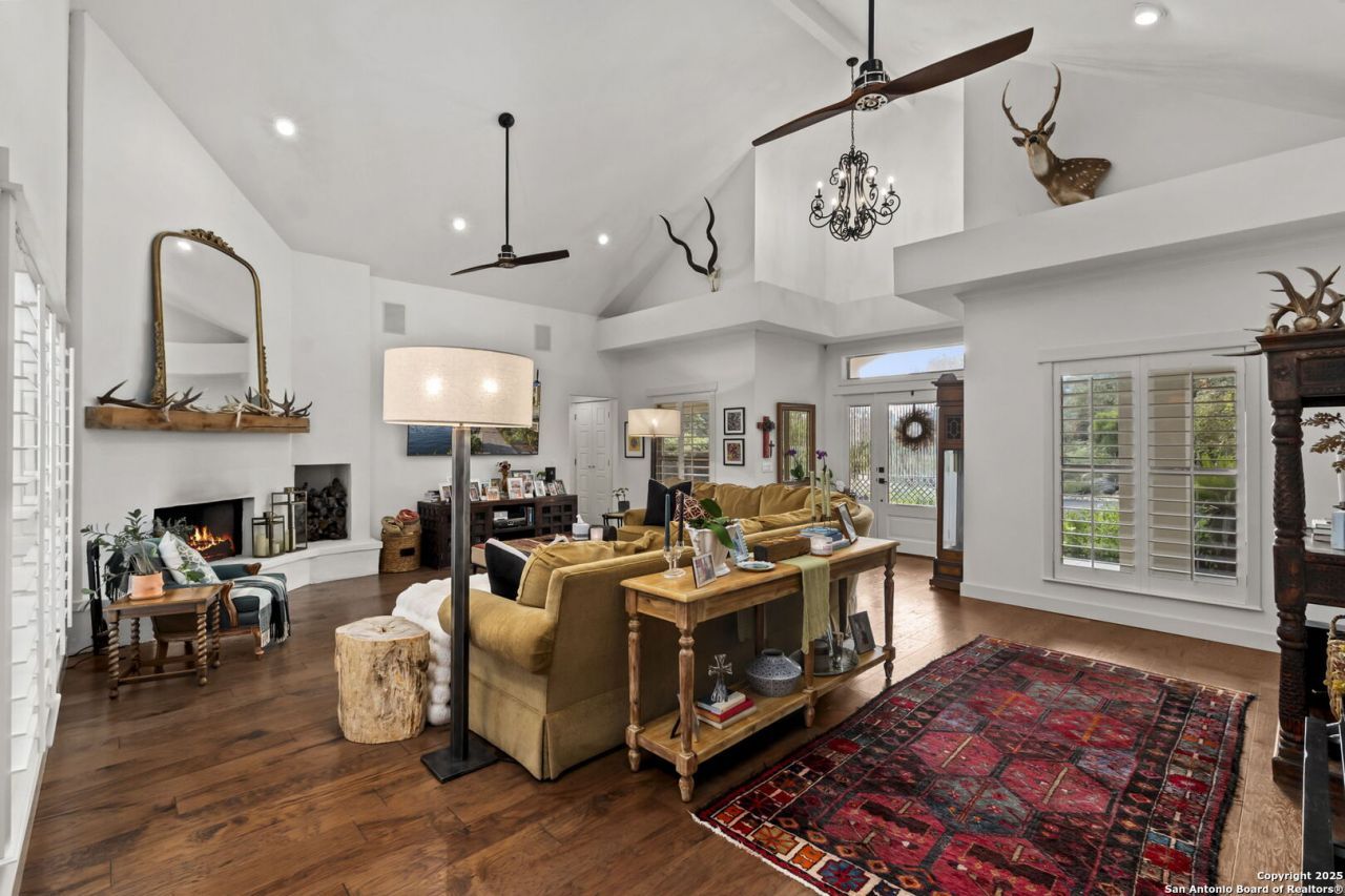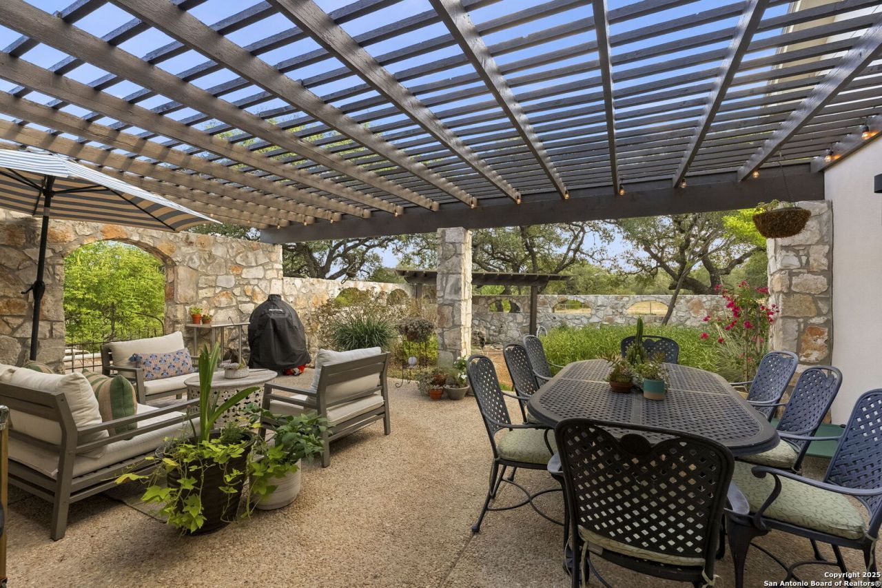 There is a rare intersection where refined living meets true Texas land-and it is almost never this close to San Antonio. Welcome to 22050 Hanging Oak, a private, gated Hill Country estate set on nearly eleven acres within Hidden Oaks Estates. This is not simply a home on acreage. It is a property designed for those who expect luxury without compromise, space without isolation, and privacy without inconvenience. Just ten minutes from the JW Marriott and twenty minutes to San Antonio International Airport, this estate offers a lifestyle that feels worlds away without sacrificing access to the city. The approximately 3,000 square foot single-story residence has been thoughtfully remodeled with a focus on craftsmanship, material quality, and timeless design. From the moment you enter, the home reveals itself through layered architectural detail-soaring ceilings, hand-troweled walls, rich hardwood flooring, and two wood-burning fireplaces that anchor the living spaces with warmth and character. The kitchen is both functional and statement-making, centered around a professional-grade Wolf gas range with pot filler, an apron-front farmhouse sink, custom illuminated cabinetry, and an expansive quartz island. It is a space designed equally for quiet mornings and elevated entertaining. The primary suite offers both scale and privacy, featuring a spa-inspired bath with a freestanding soaking tub, walk-in shower, and dual vanities framed by natural light. A secondary suite lives as its own private retreat, complete with separate entrance, fireplace, sitting area, and full bath-ideal for multigenerational living, long-term guests, or a dedicated studio space. Outdoor living is intentional and fully realized. A wraparound patio captures sweeping Hill Country views, while the enclosed rock-walled courtyard-reminiscent of a mission-style retreat-offers a more intimate setting with mature landscaping and water features. These spaces are designed to transition seamlessly between indoor comfort and outdoor experience. The land itself is as functional as it is beautiful. Nearly eleven acres of usable terrain, framed by mature oak trees, provide both privacy and purpose. The property includes a skeet shooting range, a barn with a climate-controlled room, drive-through equipment storage, and a separate gated pasture for livestock. A private well and rain catchment system support long-term self-sufficiency, while a paved circular driveway with gated entry accommodates multiple vehicles with ease. Details often overlooked in lesser properties have been carefully considered throughout, including a custom dog wash station, Dutch door entry, plantation shutters, and curated finishes that reflect a consistent level of design intent. Properties that combine this level of finish, acreage, privacy, and proximity to San Antonio are not common. They are finite. Private showings are available by appointment for qualified buyers.