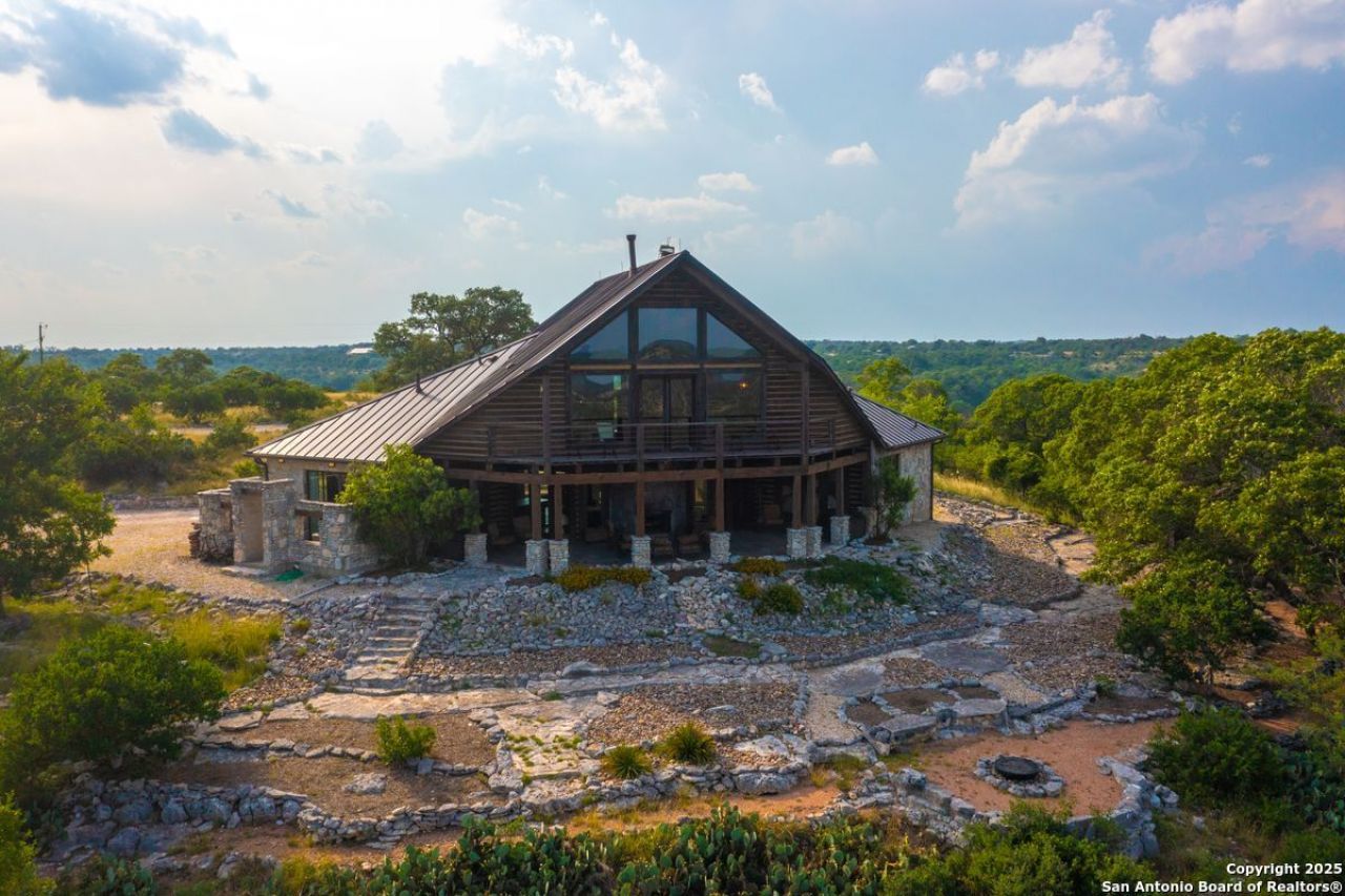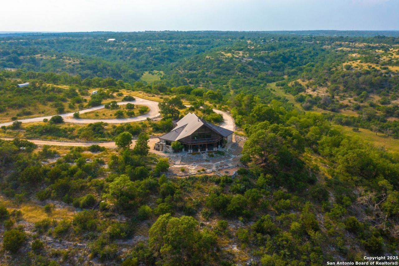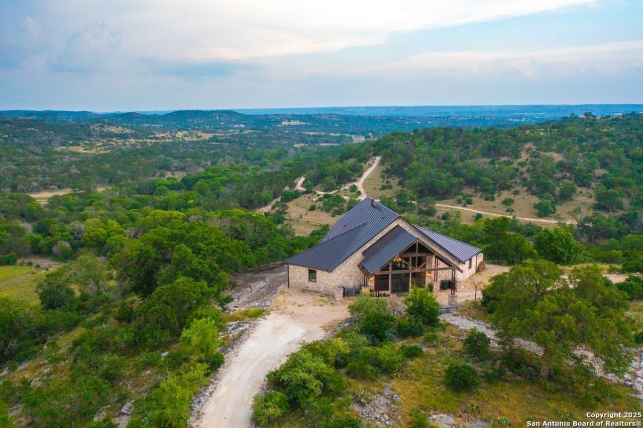 Welcome to Valley View Ranch, a private Hill Country retreat offering stunning panoramic views and end-of-the-road seclusion. Perched at 1,900, the custom 3,041 square foot home is thoughtfully positioned to capture sweeping southeastern views over the Guadalupe River valley, with morning sunrises on full display. Situated on approximately 31 acres, much of the property rests atop a hill, providing 360-degree views, while also offering access to lower elevations. The landscape is dotted with mature oak trees, and the area is rich with native and exotic wildlife, including whitetail deer, axis, and views of neighboring high-fence ranches populated with unique exotics.