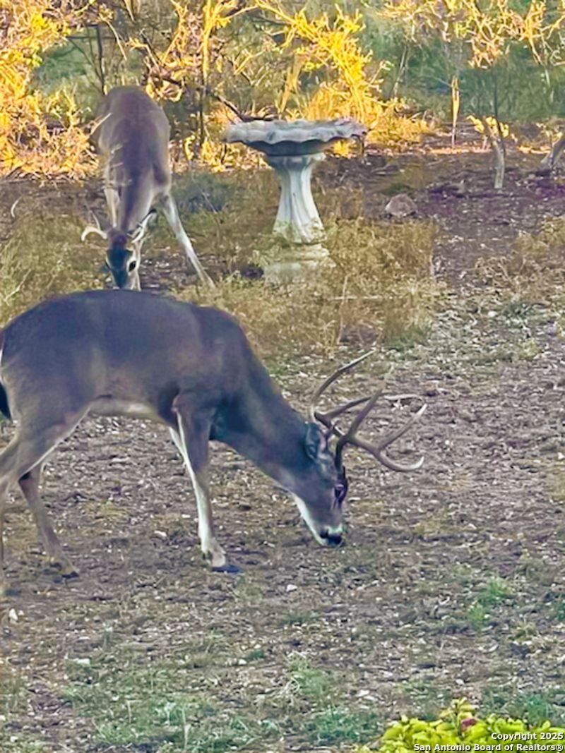 Beautiful Custom Texas Hill Country home on 7 gorgeous acres covered in wildlife! Enormous front and back Concrete patios and walkways on both sides of the home with Yard Lighting on all sides! Plentiful wildlife: Axis, Whitetail deer & hogs. Wildlife tax exemption is in place now. The home features a stunning open Living/Dining area with a huge breakfast bar, upgraded porcelain tile floors, quartz countertops, thermidor gas stove/appliances, Kohler bath fixtures & custom blinds throughout. All 4 bedr