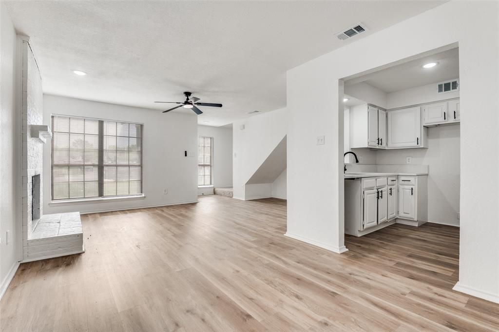 interior and an inviting open layout. Inside, you’ll find updated flooring, fresh neutral finishes, abundant natural light, and a spacious living area anchored by a cozy fireplace. The kitchen has been tastefully updated with white cabinetry, modern hardware, ample counter and cabinet space, and a functional layout that opens well to the main living and dining areas, making everyday living and entertaining easy.Upstairs, the home offers 2 comfortable bedrooms and a full bath, while the main level includes a convenient half bath for guests. Updated bathroom finishes, a separate utility area, and a neutral color palette add to the home’s move-in ready appeal and make it easy for a buyer to personalize. Outside, enjoy a fenced yard with room for pets, play, or relaxing outdoors, along with covered parking.This is an excellent opportunity for a buyer seeking low-maintenance living with stylish updates, practical space, and a convenient Arlington location close to shopping, dining, parks, and major commuting routes.Buyer and buyer’s agent to verify all information, including schools, measurements, square footage, and HOA information.