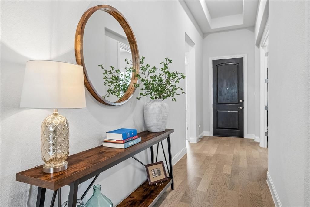 Tucked away on a quiet cul-de-sac in sought-after Heath, this stunning 2020-built home offers the perfect blend of modern design and everyday comfort—just minutes from the lake, blocks from Linda Lyon Elementary, and steps from Heath Golf & Yacht Club.Spanning approximately 2,400 square feet, this 3-bedroom, 2-bath home with a dedicated office is filled with thoughtful upgrades and custom built-ins throughout. Soaring 10+ foot ceilings, large fireplace, and expansive windows flood the open-concept living spaces with natural light, all while framing serene views of the backyard retreat.The heart of the home is the beautifully appointed eat-in kitchen, featuring stainless steel appliances, a gas cooktop, and seamless flow into the living and dining areas—ideal for both entertaining and daily living. The private primary suite is a true escape, offering tranquil backyard views and a spa-like bath complete with a soaking tub, oversized shower, and a generous walk-in closet.Step outside to your own resort-style oasis: a covered patio with built-in kitchen, nook for a Green Egg, beverage fridge, and TV setup—perfect for year-round gatherings.Enjoy a lifestyle that extends beyond your front door with community amenities including lake access, scenic walking trails, fitness facilities, clubhouse dining, and a premier golf course.Modern luxury, unbeatable location, and effortless living—this is Heath at its best.