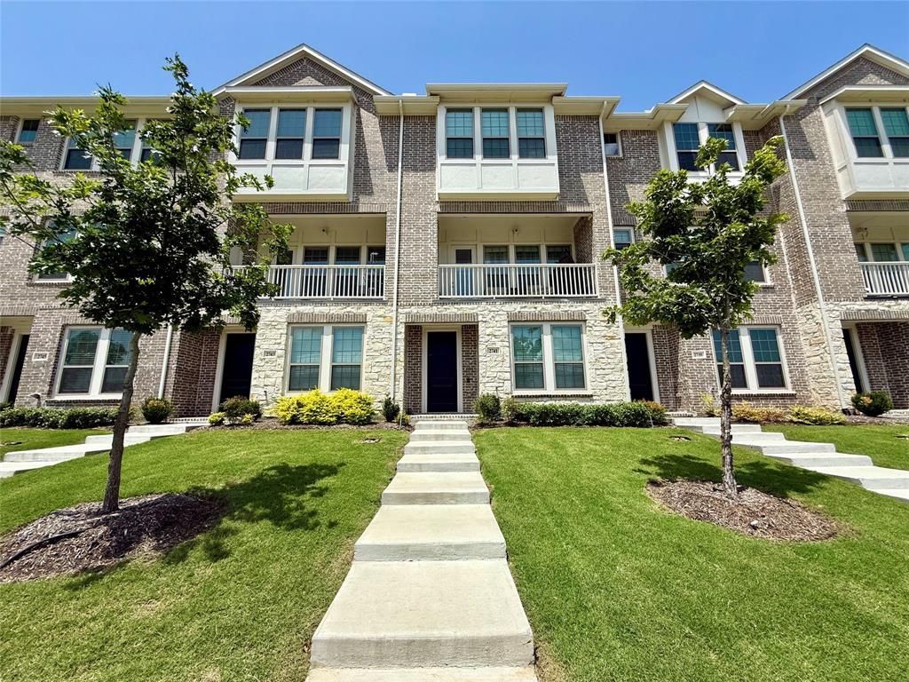 Enjoy tranquil waterfront views from your private balcony in this stunning 3-story luxury townhome nestled along a peaceful canal. Built in 2022 and offering over 2,100 square feet of modern living space, this home features 3 spacious bedrooms, each with its own ensuite bathroom, plus an additional half bath for guests. A full bedroom and bathroom are located on the first floor, perfect for guests or a private office setup. The heart of the home is on the second floor, where you'll find a spacious open-concept living and dining area that flows seamlessly into a walk-out balcony overlooking the water - perfect for morning coffee or evening unwinding. The expansive kitchen is a standout feature, offering extended quartz countertops, abundant cabinet storage, and stainless steel appliances. A thoughtfully integrated pocket office sits at the end of the kitchen - perfect for remote work, planning, or organization. The third floor of the home houses the owner's suite, which is a true retreat, complete with a large bathroom with double vanities, an oversized walk-in shower, and his-and-hers walk-in closets. The third floor also features a spacious third bedroom with it's own en-suite bathroom, as well as a conveniently located laundry area. This home offers maintenance free living as HOA will maintain the front yard. The home also has generous parking with a 2 car garage and driveway parking for two additional vehicles. Convenient access to Hwy I-35N, 121, and George Bush Turnpike and minutes away from DFW airport. A rare opportunity to lease a canal-front home in a central location. Fridge included. Washer and Dryer not included. Applicant income must be 3x rent and credit score must be 650+. Application fee is $75 for each person over the age of 18. Please provide 1 hour notice for showings. Contact agent for application link.