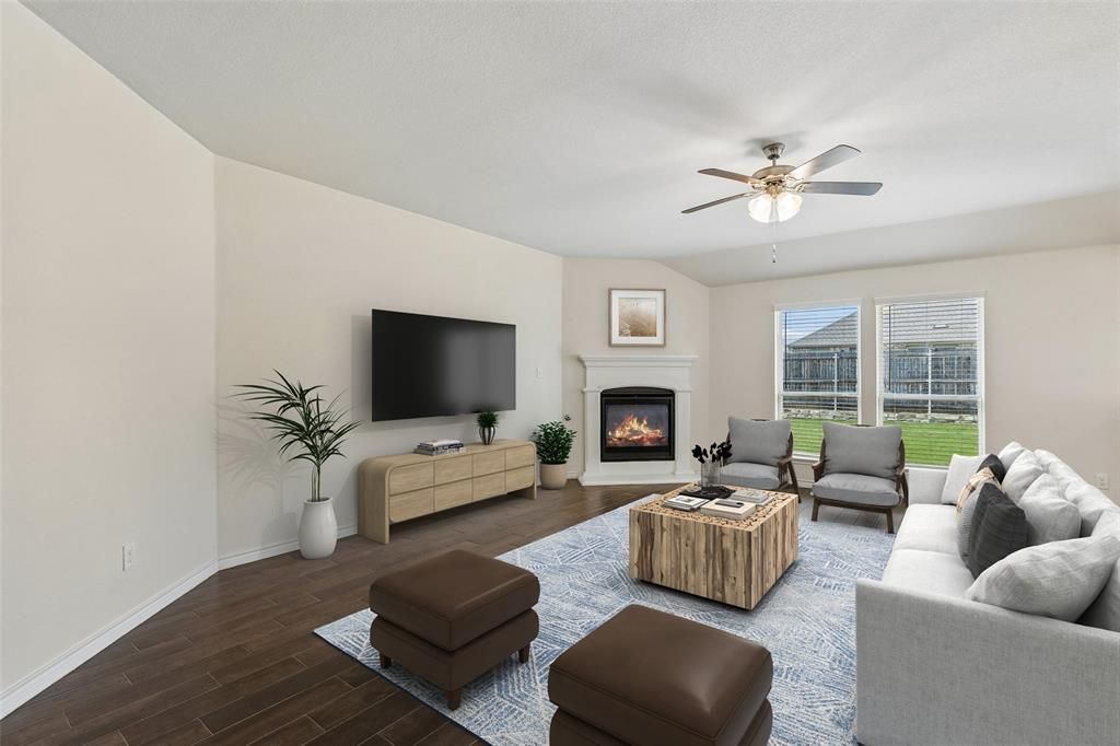 Welcome to this pristine east facing single-story home offering turnkey comfort, charming curb appeal, and access to resort-style amenities that make every day feel like a getaway.Step inside to a thoughtfully designed, light-filled open floor plan—perfect for both everyday living and effortless entertaining. The stylish white kitchen is a true centerpiece, featuring stainless steel appliances, a spacious pantry, shaker-style cabinetry, designer backsplash, and durable wood-look tile flooring that seamlessly flows through the dining and main areas of the home.The split-bedroom layout provides ideal privacy, with a serene primary suite tucked away from the secondary bedrooms. Enjoy a spa-like ensuite complete with a walk-in closet, walk-in shower, and a large soaking tub—perfect for relaxing at the end of the day.Additional highlights include smart home features such as a front door camera and lock system for added convenience and peace of mind.Larger fully fenced backyard with plenty of grass space for a trampoline, playscape, or a garden for all you green thumb enthusiasts. Quick access to major routes & an array of entertainment, shopping, restaurants, and trendy hot spots to enjoy! Come make this gem your perfect home sweet home!