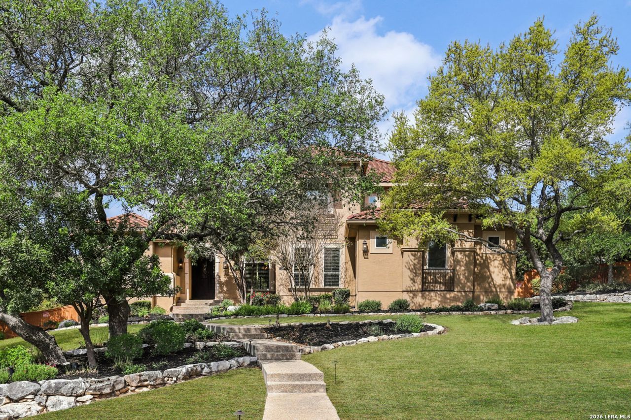 A breathtaking McNair Custom Mediterranean-style estate located in the prestigious Reserve at Sonoma Ranch. Perfectly situated on a beautifully landscaped 1.24-acre lot backing to over 1,300 acres of serene greenbelt, this exceptional property offers privacy, luxury, and unforgettable views. Lovingly and meticulously maintained, this home showcases true pride of ownership. The sellers have consistently invested in its care and upkeep, ensuring every system, finish, and feature has been thoughtfully preserved-offering peace of mind and a true move-in-ready experience for the next owner. Designed with entertaining in mind, this home truly shines as the ultimate summer retreat. Step into your own private resort featuring a sparkling pool, expansive cabana with a cozy fireplace, built-in gas grill, fire pit, and generous outdoor storage. Whether hosting large gatherings or intimate evenings, the outdoor living spaces create an unmatched setting for relaxation and celebration. Elegant exterior lighting further enhances the ambiance, making every evening feel like a luxury getaway. Through impressive 12-foot custom iron doors, youre welcomed by dramatic ceiling details, abundant natural light, and a chefs kitchen built to impress. Featuring granite countertops, rich Alder cabinetry, stainless steel appliances, gas cooktop, double ovens, and a spacious walk-in pantry hidden behind a custom iron door, this space is as functional as it is stunning.The luxurious primary suite is a true sanctuary, offering dual walk-in closets, a spa-inspired bathroom with garden tub and walk-through shower, plus private access to the backyard oasis. A guest suite on the main level provides convenience and privacy, while upstairs offers two generously sized bedrooms, two full baths, a spacious family room-perfect for movie nights and entertaining guests. With prime access to I-10 and Loop 1604, and just minutes from La Canteras premier shopping, dining, and top-tier medical centers, this home offers unmatched convenience in one of San Antonios most desirable locations.Dont miss out on this impeccably maintained home; schedule your private showing today.