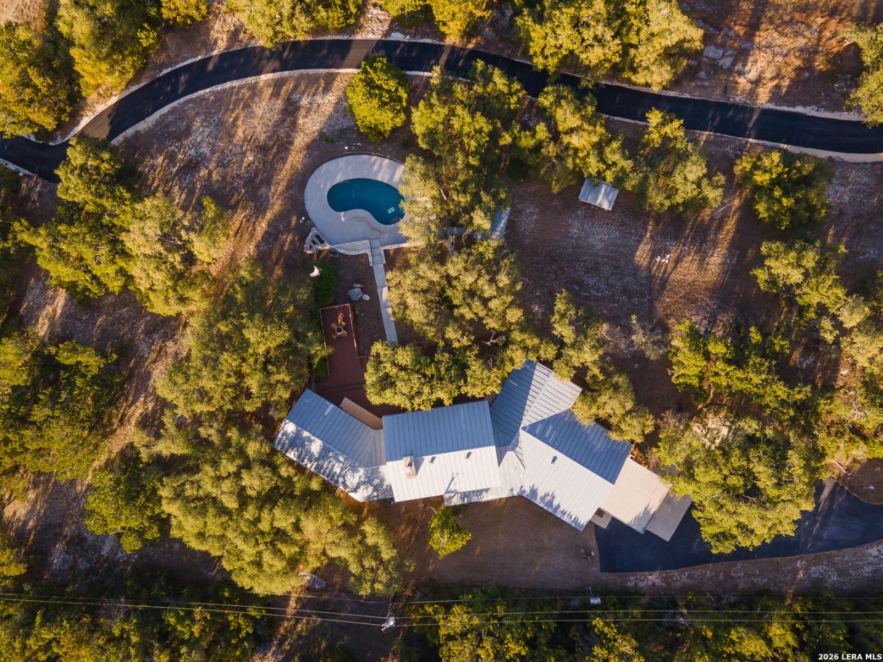 AMAZING VIEWS! SPECTACULAR STAR LIT NIGHTS! Remote-Open GATE! Modern-Rustic Style, Hill Country Estate on 4.26 wooded Acres. (View video tour). NEW ASPHALT ROAD! NEW REMOTE ENTRY GATE! FREE WATER! Unrestricted DEEP WATER WELL w/Chlorinator. LIKE NEW! 3 Bedroom 3 Bath home includes 2 Master Bedrooms and 2 Master Baths on the First Floor. This modern yet rustic style home is beautifully designed with a cozy feel, yet opens wide to the outdoors by way of the large, wood-framed, glass wall-style doors, bringing the outdoors in! Nights and evenings are breathtaking on the deck or the heated pool, with spectacular views of the stars, planets, or, during the day, the amazing countryside! This perfect home has lots of character and modern luxuries, ready to entertain family and friends. Plenty of parking for RV, Boat, or business vehicles, and equipment. Beautiful open floor plan with a kitchen featuring stainless steel appliances, a golden flake backsplash, large custom cabinets, premium granite countertops, a walk-in pantry, and a utility room. The 2nd floor offers a media room, a fireplace, a covered balcony, and a wet bar. Other features include a metal roof, a large 2 car garage plus carport, extra parking, fenced heated pool, huge wrap-around 3,300 sqft, multi-level Trex deck perfect for relaxing or entertaining many! The property is fenced, includes a fully wired workshop, a new electric-remote gate, and a White picket fence! Only a minutes drive to Boerne, Bulverde, Canyon Lake, San Antonio Airport, Golfing, and shopping! Come see this wonderful home for yourself. A/C and water heater, approx. 4 years old. New asphalt road, new electric-remote gate, water softener included. This home is priced well below market value for a quick sale! Hurry!