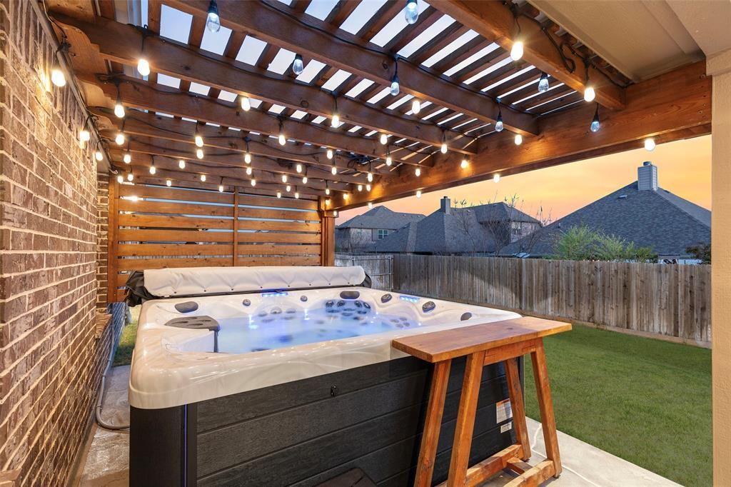 Welcome to a home where community, comfort, and upgrades come together. A small-town feel a place where neighbors quickly become friends. You’ll enjoy the convenience of quick access to Highway 75 yet walk to schools and parks. From the moment you arrive, the home’s curb appeal stands out with a beautiful brick and stone façade . Offering over $100,000 in exterior improvements, to include professional landscaping, architectural lighting, and an incredible outdoor living space designed for entertaining. The outdoor living space provides extended covered patio, fireplace, pergola, mounted TVs, and premium hot tub create a backyard retreat you’ll enjoy year-round. Inside, thoughtful upgrades and craftsmanship are immediately apparent. Nail-down hardwood floors, designer lighting, custom built-ins, granite in every bathroom, framed mirrors, and a stunning stone fireplace elevate the home’s style while maintaining warmth and comfort. Designed for both functionality & flexibility, this 1.5-story floorplan offers the convenience of single-level living. The main level is complete with 4 bedrooms, a flex space, and an open-concept kitchen, dining, and living area perfect for everyday life and entertaining. Upstairs, a spacious loft and large game room provide the ideal setting for movie nights, gaming, or a home office. The expansive three-car garage is a standout feature with 13-foot ceilings, overhead storage, decked attic storage, an exterior door for backyard access, a dedicated trashcan pad, & a 220v outlet ready for an RV or electric vehicle charger. Storage & practicality were carefully considered throughout the home, with a huge walk-in pantry, multiple closets, walk-in attic access for easy AC filter changes for the two HVAC systems. With no MUD or PID tax this home is a win. This community has hike and bike trails for enjoyment as well as a great pool and playground. Downtown Van Alstyne is a short drive where the city provides year long activities and events.