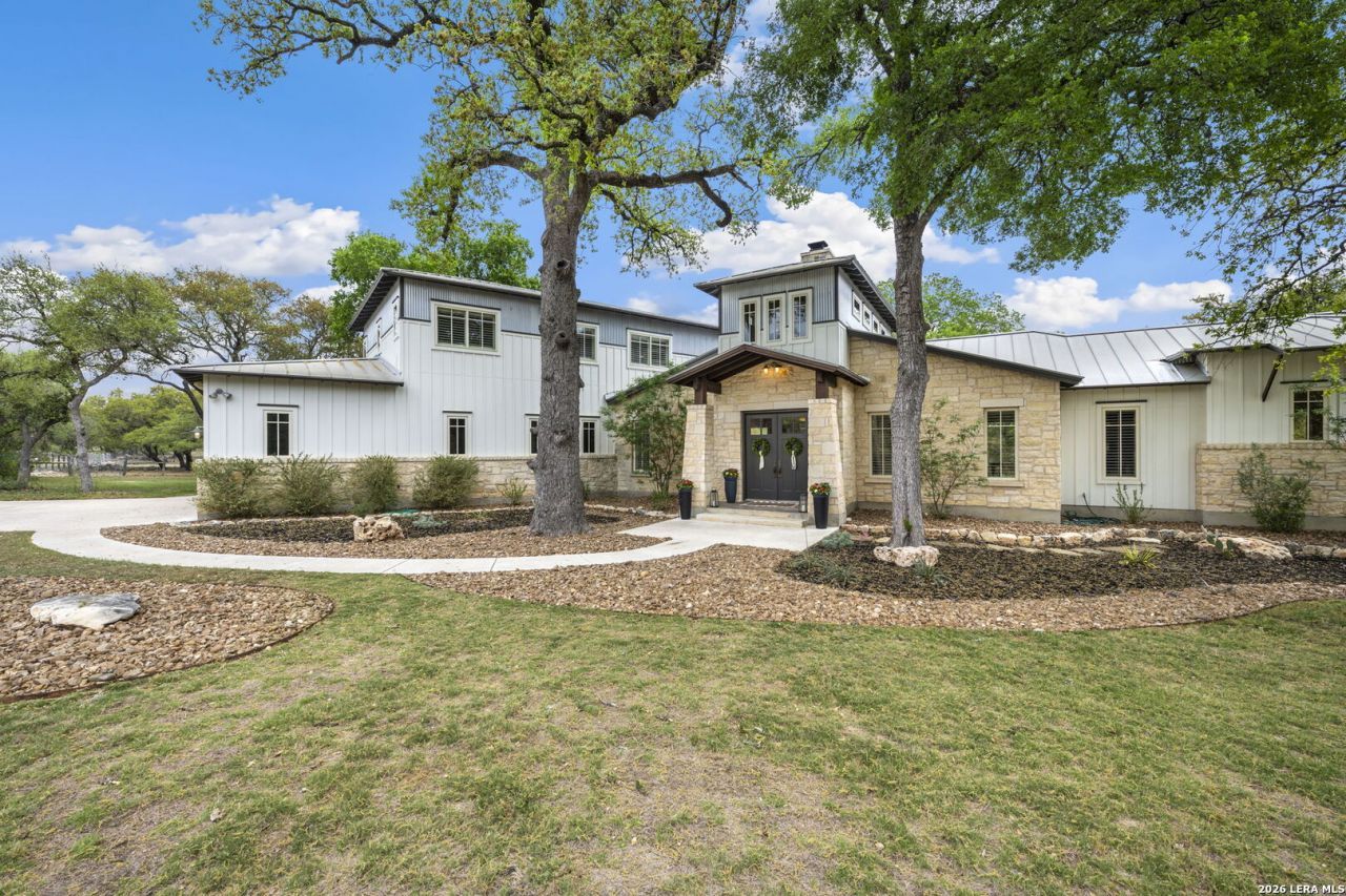 Experience the perfect blend of privacy, space, and convenience at 32550 Stahl Ln in Bulverde, TX. Set on over 10 ag-exempt acres with stunning mature trees and peaceful pasture views, this one-of-a-kind estate offers a true Hill Country retreat with no HOA, just minutes from everyday essentials. This meticulously maintained custom home features 5 bedrooms, 4.5 bathrooms, a dedicated study, fitness room, and multiple flexible living spaces including two bonus rooms ideal for additional sleeping quarters, media room, playroom, or home office. The expansive open-concept living, kitchen, and dining area is designed for both everyday living and entertaining, complete with a striking double-sided fireplace and soaring clearstory windows that flood the home with natural light. The chefs kitchen is equipped with premium appliances including a Thermador Freedom induction cooktop, double dishwashers, a full-size refrigerator, and separate full-size freezer. Step outside and enjoy resort-style living with a pool, hot tub, sand volleyball court, and extensive covered porches perfect for relaxing or entertaining. The property also features a horse barn, fully fenced and cross-fenced acreage, a fenced and covered dog kennel, and an invisible fence system for pets. An RV-ready 30-amp outlet adds additional convenience for guests or travel enthusiasts. A screened upstairs porch offers a peaceful place to unwind and take in the surrounding views. Located just 5 minutes from HEB, 10 minutes from Stone Oak, and 25 minutes from San Antonio International Airport, this property offers the rare opportunity to enjoy serene country living without sacrificing proximity to shopping, dining, and local conveniences.