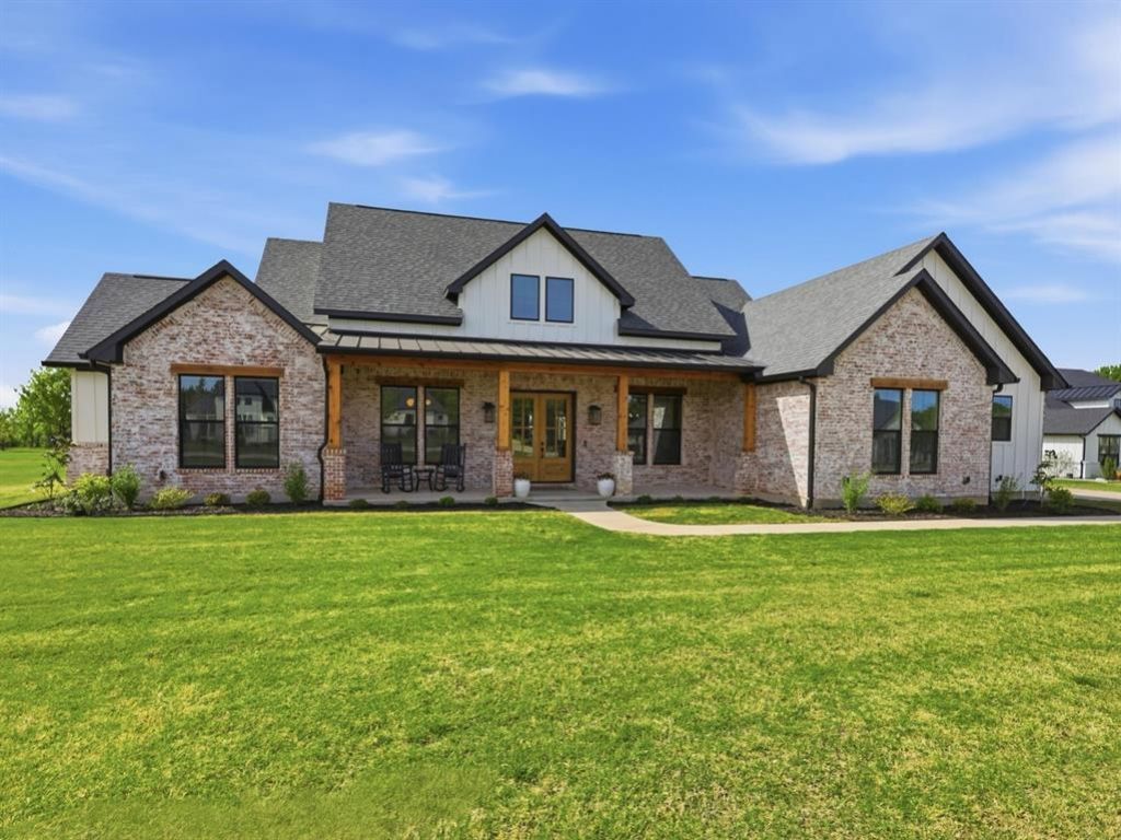 Rare opportunity to own a stunning modern farmhouse on a 1.03-acre lot in the highly sought-after Blue Hills of Van Alstyne. This property offers a peaceful, country feel while being conveniently located just minutes from major highways and downtown Van Alstyne. Located outside city limits and zoned to highly rated Van Alstyne ISD. Built in 2023, this like-new home features 4 bedrooms, 3 full bathrooms, a dedicated office, and a formal dining room. The open-concept layout is filled with natural light and enhanced by decorative lighting and light-toned flooring throughout. The spacious living room includes wood beam accents, a floor-to-ceiling decorative electric fireplace, and surround sound is already pre-wired and ready for install. The kitchen offers Knotty Alder cabinetry, quartz countertops, and electric appliances. The home also includes an owned propane tank servicing the tankless water heater and future pool stub-out. Split bedroom arrangement provides privacy. Three secondary bedrooms are located on one side of the home, along with a full bathroom and a Jack-and-Jill bathroom. The primary suite is situated on the opposite side and features direct access to the back patio and a spa-like ensuite bath with separate vanities, dual closets, a walk-in shower, and a soaking tub. One of the primary closets connects to a large laundry room with built-in cabinetry, backsplash, a farmhouse sink, and space for an additional area for a 2nd refrigerator. An oversized pantry is located behind a sliding barn door. The home also includes a 3-car garage and behind a hidden door you will find a staircase that leads up to the 2nd story attic area of 726 sq ft that has been prepped for future 2nd story use if you ever wish to add on. The 1.03-acre lot features professional landscaping, a sprinkler system, and an aerobic septic system. Plenty of space to add a shop, pool, or additional outdoor living features. HOA is $650 annually.