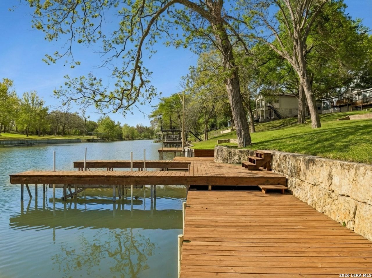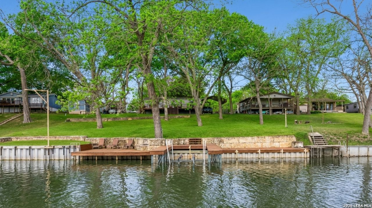 100 of Lake McQueeney waterfront with private dock and private boat lift. This property delivers the lake lifestyle buyers are looking for with a large backyard, mature shade trees, and wide open green space designed for outdoor living. The shoreline setup makes boating, swimming, and relaxing easy, while large outdoor areas provide comfortable spaces to gather and enjoy the scenic river views. Energy is building across Lake McQueeney as the lake is actively refilling, expected to be at full pool by summer of 2026. A sprinkler system keeps the yard maintained, and the peaceful setting creates the kind of environment where weekends naturally move outdoors. Additional features include a metal carport suitable for boat or vehicle storage, plus a detached storage shed and workshop with shelving-ideal for tools, equipment, and lake gear. Inside, the home offers an open layout with abundant natural light and direct access to outdoor living spaces. The kitchen features a gas cooktop, dishwasher, ample cabinetry, and dedicated dining space, all connected to the main living area overlooking the water. The primary bedroom includes lake views, walk-in closet, and full bath, while secondary bedrooms provide comfortable space for guests or family. Dock in place. Usable yard. Lake McQueeney ready.