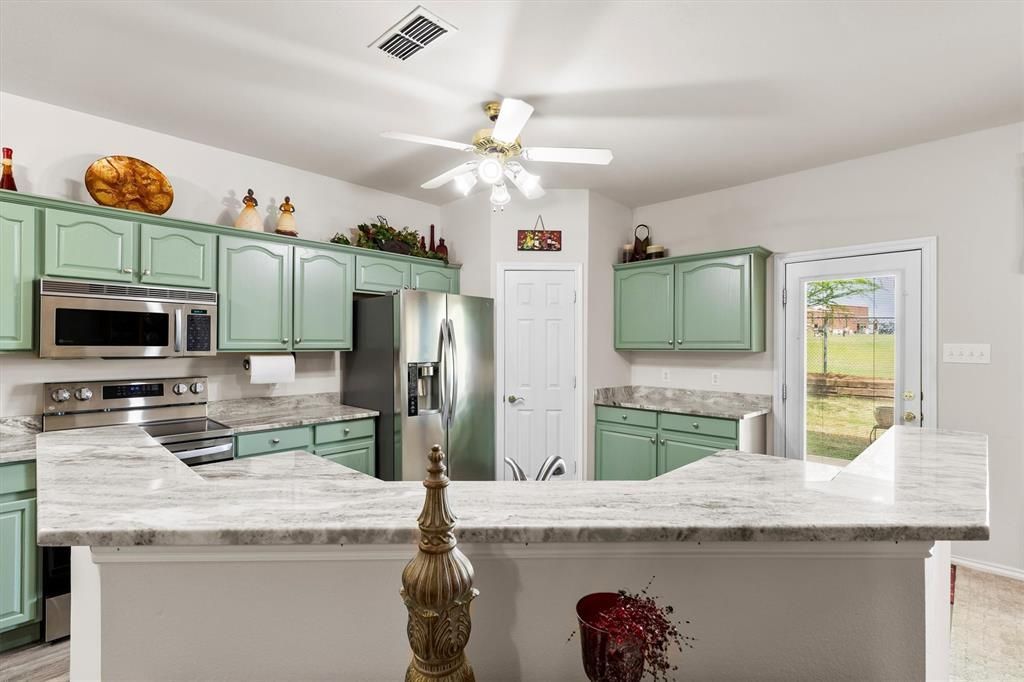 Don’t miss this beautifully updated one-owner home in Gainesville, TX! This 3 bedroom 2 bath open-concept floor plan delivers with a stylish kitchen featuring granite countertops, stainless steel appliances, and durable LVP flooring. Thoughtfully designed with a mix of carpet and tile for comfort where it counts. Step out back to a covered porch made for morning coffee and evening unwinding. Nestled in a quiet, peaceful neighborhood, this home is clean, well-maintained, and move-in ready—homes like this don’t last long!