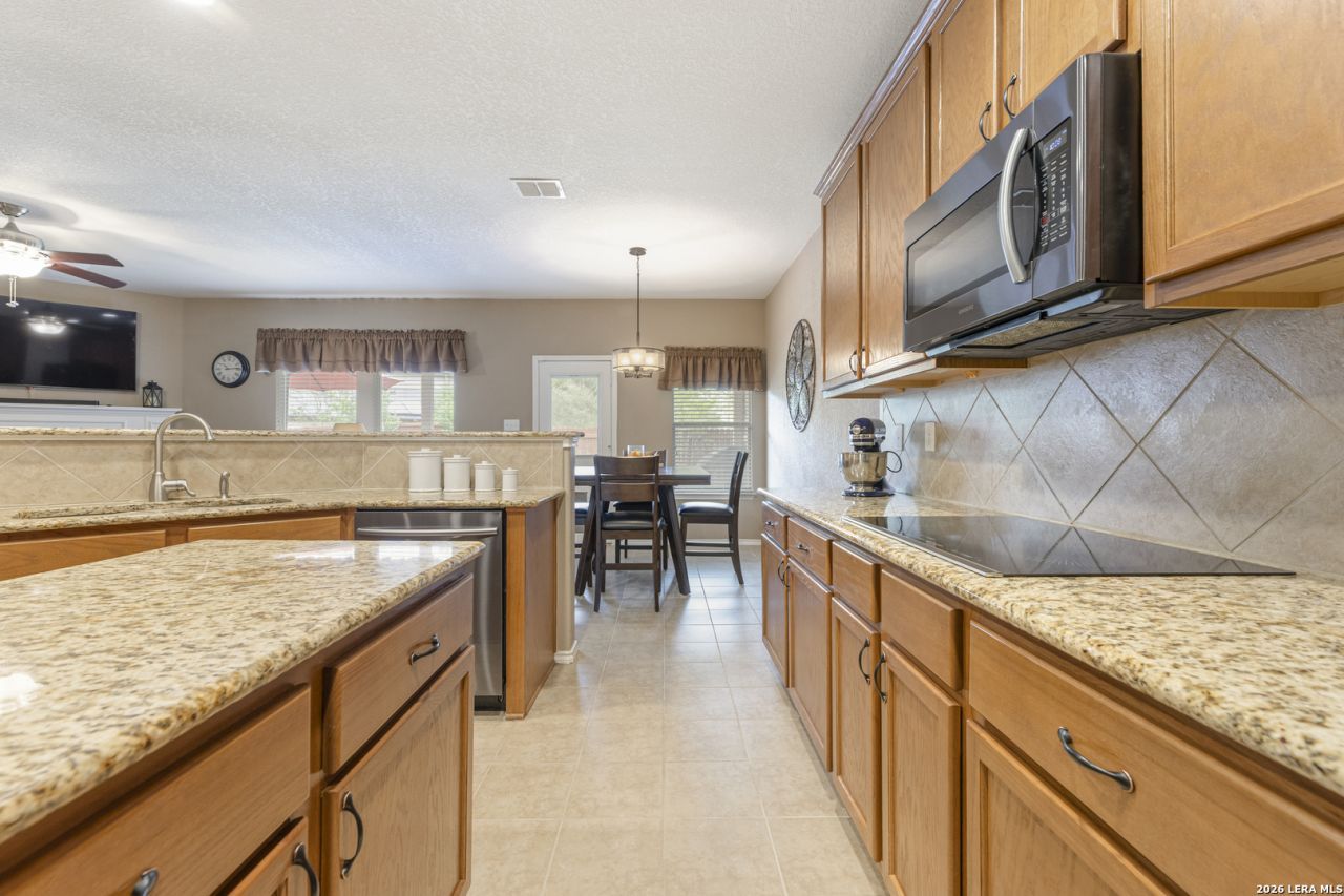 Set within the Estates of Kensington Ranch, this one-story home offers a layout that balances comfort, space, and everyday functionality. With 4 bedrooms, 2 baths, and 2,404 square feet, the design makes it easy to settle in and feel at home. Inside, multiple living areas give you the flexibility to create spaces that fit your routine, whether its a cozy spot to unwind or a place to gather and entertain. The kitchen naturally draws everyone in, featuring an island, granite countertops, double ovens, and ample cabinetry, all arranged to make both daily meals and hosting feel effortless. The primary suite is privately positioned and offers a relaxing retreat, complete with a garden tub, separate walk-in shower, dual vanity, and a spacious walk-in closet. The additional bedrooms provide plenty of options for guests, a home office, or hobbies, while the dining area, laundry room, and two-car garage add to the homes thoughtful layout. Out back, the covered patio opens to a nicely maintained yard with mature trees, a hot tub, and functional outdoor space that works well for both casual get-togethers and quiet evenings. Located in Schertz with convenient access to Interstate 35 and Loop 1604, youre just a short drive from San Antonio and Randolph Air Force Base. Its also located within the Schertz-Cibolo-Universal City Independent School District and near shopping, dining, and everyday conveniences, including The Forum at Olympia Parkway. A home that offers the space you need, in a location that keeps everything within reach!