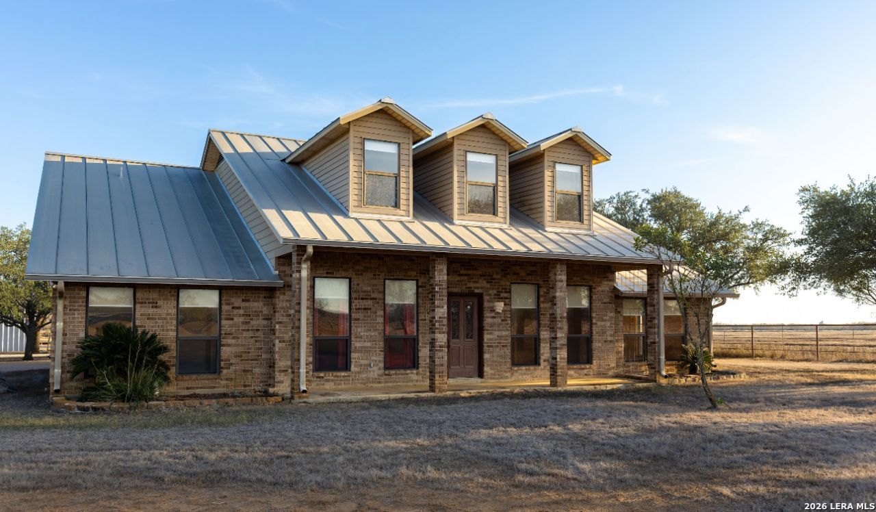 Seller is offering $12,000 in buyer concessions - Buyer can use this $12,000 for interest rate buy down or use towards their closing cost. Welcome to wide-open skies, working land, and room to grow. This unrestricted Atascosa County Ranch sits outside city limits and delivers the lifestyle Texans dream about. Set on fully fenced & cross-fenced 54+ Acres with an Ag Exemption already in place, this property is ready for cattle, coastal hay production, and everyday ranch life. The Buyer Receives 11 city lots with this Property - Endless Potential - Keep it part of the Ranch or Look at Developing - A large pond on site (with natural creek access) offers pond expansion potential - perfect for duck or dove hunting, livestock, or simply enjoying peaceful country views. The improved pasture lands are ideal for grazing and hay, while multiple large pole barns and working cattle pens make this a true turnkey setup for ranching or ag operations. Inside, the home is thoughtfully designed and connected to city water and sewer for modern convenience while still enjoying country freedom. Features include: 3 Bedrooms, 2.1 Bathrooms, Dedicated Office with Large Closet, Wood Burning Fireplace in Living Room, and 2 Carport Attached to Home. Plus - a huge bonus room already plumbed for a future bathroom offers endless possibilities: add extra bedrooms, create a game room or media space, or build the ultimate kids hangout -this flexible area is a game-changer. Outside, youll appreciate the space to expand, store equipment, or build out additional improvements with existing infrastructure already in place. Whether youre looking for a working ranch, a peaceful country homestead, or land with serious potential this property checks every box. Call Today to Set Your Appointment.