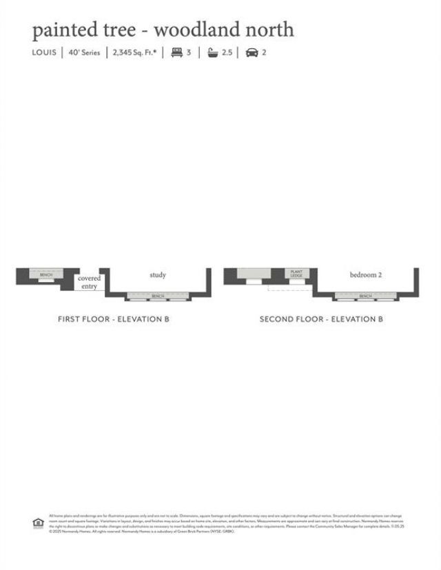 NORMANDY HOMES LOUIS floor plan. Discover the Louis floor plan, a beautifully designed two-story home offering 2,345 square feet of functional living space in the sought-after Painted Tree Woodland North community. This layout features 3 bedrooms, 2.5 baths, a private study, and a versatile game room, perfect for modern family living. The open-concept kitchen flows seamlessly into the dining and family rooms, with direct access to a covered patio ideal for entertaining. The owner’s suite includes a walk-in closet and spa-inspired bath, providing a serene retreat. With elegant architectural details and flexible elevation options, the Louis plan combines style, comfort, and efficiency for today’s homeowner.
