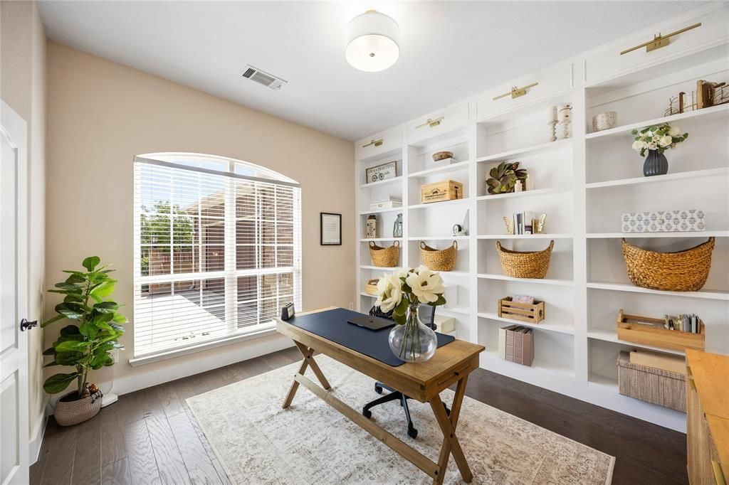 Welcome to 3805 Bonanza Ct. located in Corinth, one of DFW’s hidden gems with a true small-town feel, yet close to everything. Enjoy the ease of single-story living with only a versatile bonus room upstairs. This home has been thoughtfully updated with tons of upgrades throughout—including built-in bookshelves in the study, updated bathrooms, added built-ins, accent walls, updated lighting, and the addition of a main-level guest suite that works perfectly for visitors or multi-generational living. The main living area features a striking white stone fireplace and is filled with natural light, while the upstairs space offers flexibility as a game room, media room, or even a 4th bedroom. The kitchen is both functional and inviting with granite countertops, double ovens, stainless appliances, ample cabinet space, and a walk-in pantry, plus a butler’s pantry or tucked-away coffee nook for everyday convenience. The primary suite is spacious with room for a sitting area, home office, or potential closet expansion, and the bathroom includes dual vanities, a soaking tub, and a separate glass shower. Step outside to your own private retreat featuring a covered patio with TV setup—perfect for watching the game—alongside a fully equipped outdoor kitchen with built-in grill and refrigerator. The custom salt water pool with spa, waterfall grotto, and sun shelf is complemented by an outdoor fire pit and multiple seating areas, creating the perfect space for year-round enjoyment. The backyard is designed for both relaxing and entertaining—perfect for hosting friends, spending time with family, or enjoying the peaceful charm of your own hummingbird garden. Located in Parkside Farms with easy access to baseball and soccer fields, Lake Lewisville, trails, and major roads—this home blends comfort, thoughtful upgrades, and an unbeatable location.