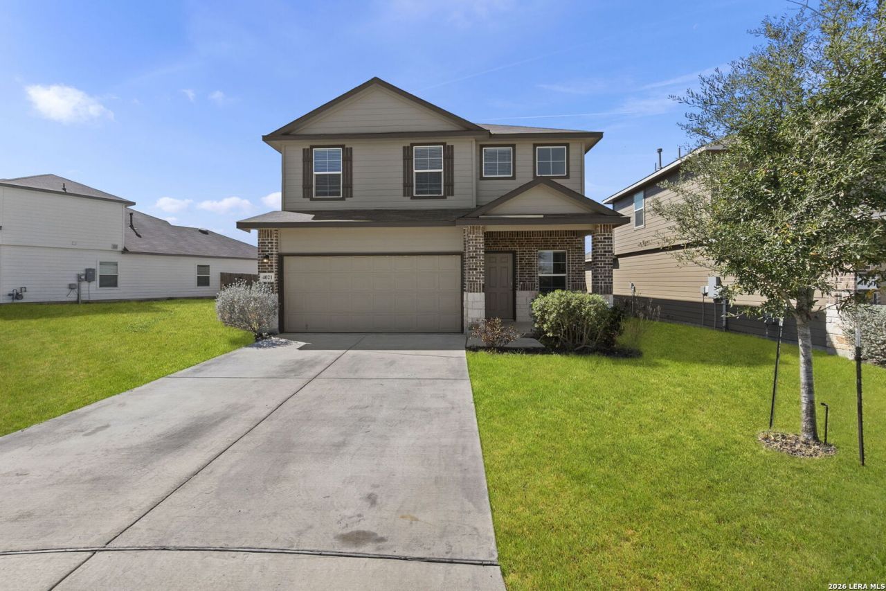 Welcome to this beautifully designed two story home offering 5 spacious bedrooms (including a convenient downstairs suite), 3 full baths, 2,498 square feet of thoughtfully designed living space, and a 2-car garage. From the moment you step inside, a grand entryway draws you into an airy open concept layout perfect for both everyday living and entertaining. The heart of the home is the stunning gourmet kitchen, featuring granite countertops, an oversized island ideal for gathering, a generous corner pantry, and a conveniently located utility/laundry room. The kitchen flows effortlessly into the dining area and living room, creating a seamless space filled with natural light and connection. A private secondary bedroom and full bath downstairs provide the perfect retreat for guests. Upstairs, youll find a versatile loft that can serve as a game room, media space, or home office, along with 4 well appointed bedrooms and 2 full baths. The private primary suite is a true sanctuary, complete with a cozy sitting area and a spa inspired ensuite featuring a grand walk-in shower, and an expansive walk in closet. Step outside to enjoy the covered rear patio, perfect for relaxing evenings or weekend gatherings. Additional highlights include durable flooring in high-traffic and wet areas, bedrooms and loft area feature plush carpeting, granite countertops in all bathrooms, and full yard landscaping with irrigation for easy maintenance. Ideally located near Randolph Brooks Air Force Base with convenient access to Joint Base San Antonio, as well as premier shopping, dining, and major commuter routes including Loop 1604, Interstate 35, and Interstate 10, this home offers the perfect blend of space, comfort, and accessibility.