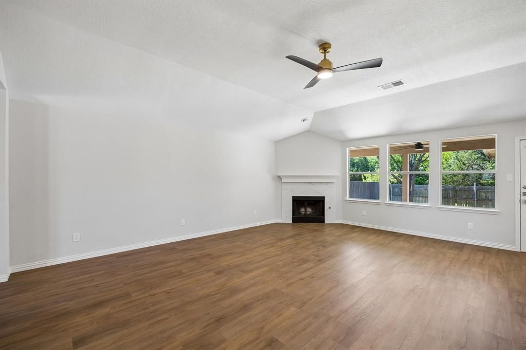 Welcome to this beautifully updated north-facing home in the heart of Fate! Featuring 10-foot ceilings and an open-concept layout, the space feels bright, airy, and inviting from the moment you walk in. The thoughtfully designed floor plan seamlessly connects the living, dining, and kitchen areas, perfect for both everyday living and entertaining. The kitchen has been refreshed with brand new cabinetry and appliances, offering a clean, modern look with great functionality. The primary suite is a true highlight, featuring a completely renovated bathroom with a freestanding soaking tub, double vanity, and a spa-like design. AC was replaced in 2021, providing added peace of mind. Enjoy added privacy and tranquil views with the open greenbelt behind. Located in a quiet, growing community with convenient access to nearby amenities, this home offers a great balance of comfort and everyday convenience.