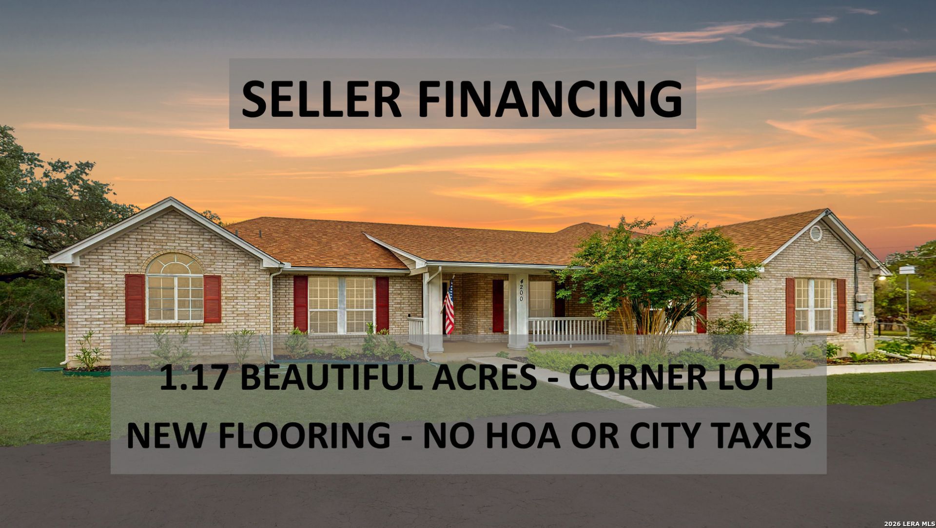 4200 Havenrock, San Antonio, TX 78259 is a 3-bedroom, 2-full-bath, single-family home listed at $729,900 with 2,462 square feet of living space on a 1.17-acre corner lot, built in 2004 in the Northwood Hills subdivision of northeast San Antonio. The standout feature is an available seller-carry financing package: 5.99% fixed rate, 100K down, 30-year amortization - no bank required. The home is zoned to North East ISD with Johnson High School rated 8/10 and Hill Middle School rated 8/10 by GreatSchools, both within 1.8 miles. The single-level open floor plan includes a 672-square-foot living room, a 19x14 kitchen with island and all appliances, a 399-square-foot primary suite with dual walk-in closets, and a dedicated study. Northwood Hills is located near Loop 1604 and U.S. 281, approximately 20 miles northeast of downtown San Antonio and 12 miles from San Antonio International Airport. The 1.17-acre lot features mature trees, a covered patio, circular driveway, 2-car attached garage, and a utility shed. Washer, dryer, and refrigerator are included.