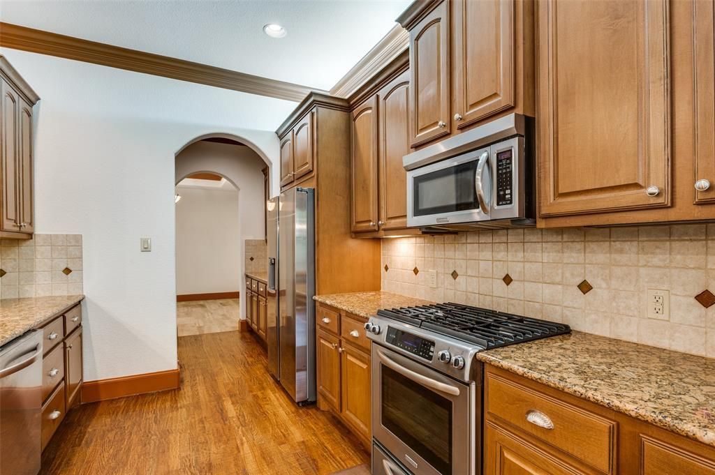 Don't miss this custom townhome nestled among the oak trees and creek in Stone Bridge Oaks! With its prime location, you'll be just minutes away from DFW Airport and can enjoy shopping and amenities in every direction. This custom home features hand-scraped wood floors, crown molding, solid wood doors, separate dining and office spaces, and an abundance of windows to let natural light shine throughout.
