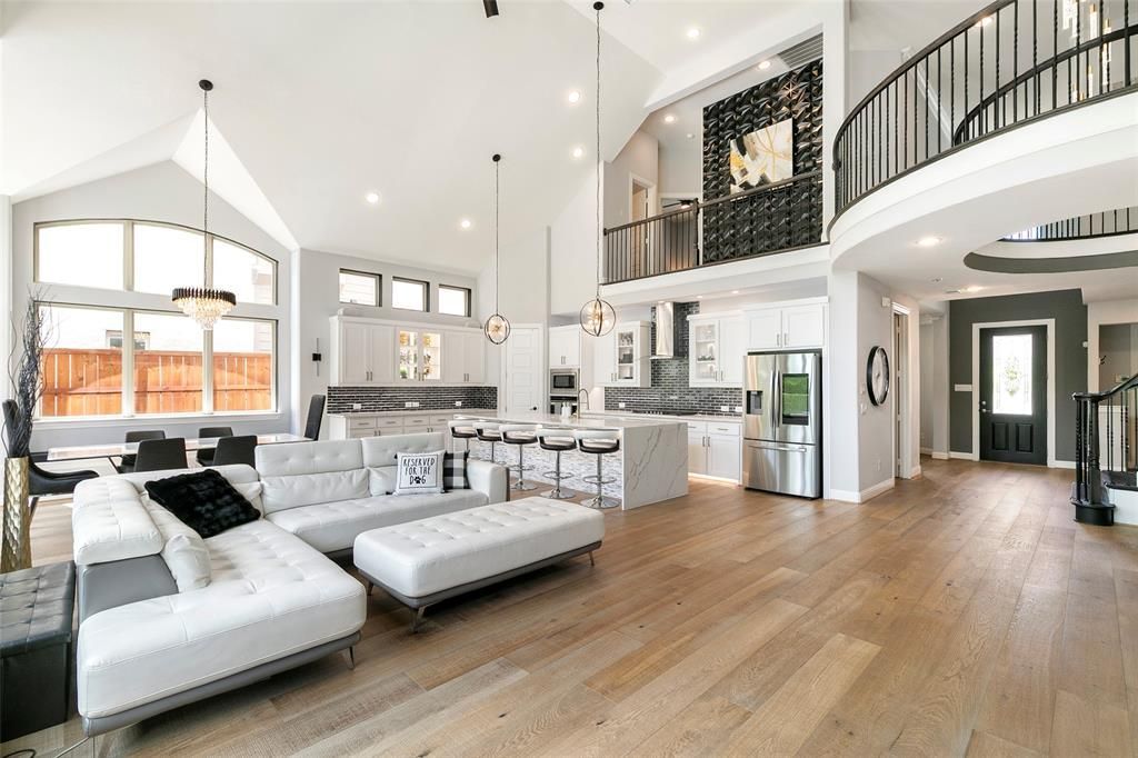 GRAND living at its finest in the heart of McKinney! This stunning 5-bedroom, 4-bath home backs to a serene greenbelt, offering privacy and picturesque views you’ll love coming home to. Designed for both luxury and functionality, this home features engineered wood flooring, a private office, formal dining, and an incredible layout perfect for entertaining. Soaring ceilings and luxurious modern light fixtures and hardware throughout.Step into the backyard oasis complete with a sparkling saltwater pool and spa, low-maintenance turf, and a built-in insect misting system—so you can enjoy outdoor living year-round in comfort.Inside, the entertainment options are endless with a fully stocked media room, spacious gameroom, and loft area. The chef’s kitchen flows seamlessly into the gorgeous dining and spacious living room, creating the perfect environment for gatherings. Throughout the home, enjoy an elevated ambiance with a built-in scent system, adding a subtle, luxurious touch.Retreat to the remodeled primary suite, where the spa-like bathroom with double vanities and extra large walk in shower impress with high-end finishes—and don’t miss the custom closet with a built-in sauna, a rare and luxurious feature!Additional highlights include a 3-car garage with epoxy floors, generous secondary bedrooms, and plenty of space for everyone.This home truly has it all—luxury, space, and an unbeatable setting backing to greenbelt views.