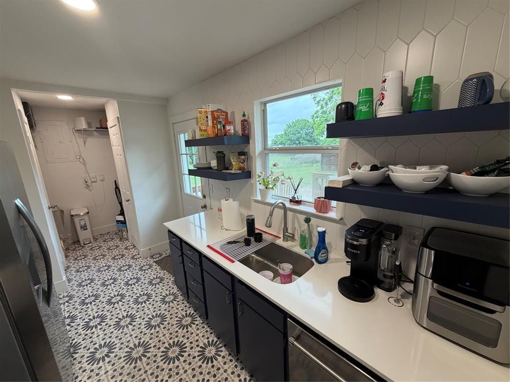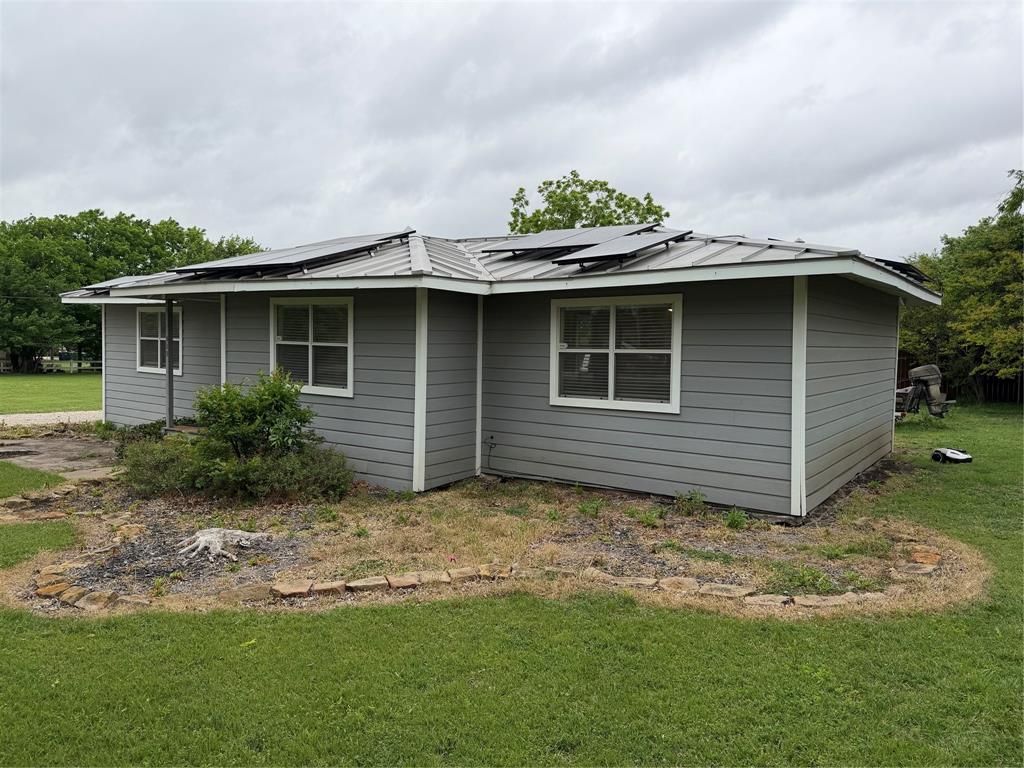 Welcome to 509 E First Street, a beautifully updated home nestled in the heart of historic downtown Prosper. This charming 3-bedroom, 2-bath residence offers approximately 1,336 square feet of thoughtfully designed living space, blending modern upgrades with small-town charm. Step inside to discover a bright, open layout featuring updated flooring, recessed lighting, modern fixtures, and stylish finishes throughout. The renovated kitchen boasts quartz countertops, stainless steel appliances, custom cabinetry, designer tile flooring, and open floating shelves, creating a clean and contemporary feel perfect for everyday living or entertaining. The spacious living areas provide flexibility for both relaxation and work-from-home functionality, ideal space for a home office, guest suite, or flex room. Outside, enjoy the expansive yard with plenty of room to entertain, garden, or expand. Additional highlights include a durable metal roof with solar panels that keep your Electrical bill at near zero ! . Solar panels are owned and NOT leased. fresh exterior paint except the trim, updated curb appeal, a large backyard deck area, mature trees. Located within highly sought-after Prosper ISD and just minutes to downtown Prosper shops, dining, and future redevelopment, this move-in-ready property offers a rare opportunity to own a stylishly renovated home in one of Prosper’s fastest-growing and most desirable areas. Don’t miss your chance to own this unique property in the heart of Prosper.