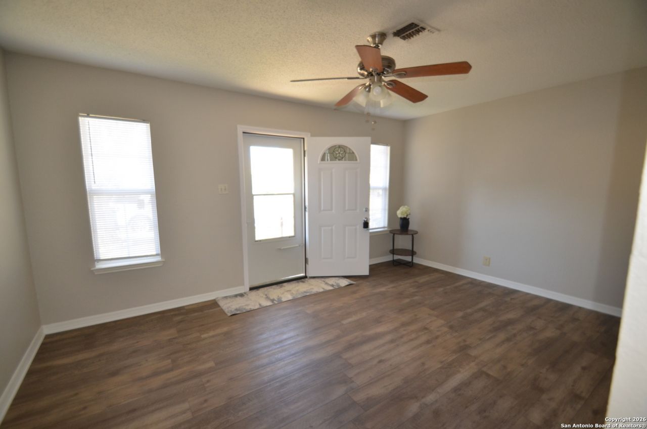 Several updates done to this property. Awesome income producing property in Schertz. This great duplex is just minutes from the elementary school, and close to Pickrell Park with the pool and sport courts. 2 year old roof. Each side boasts a kitchen dining area, living area, master bedroom & bath downstairs and a gameroom with a closet upstairs. New Stove, Investor could live on one side and rent the other, or rent both out. New paint, new tile, new LVP, newer fixtures. Property sits on a 1/4 of an ac