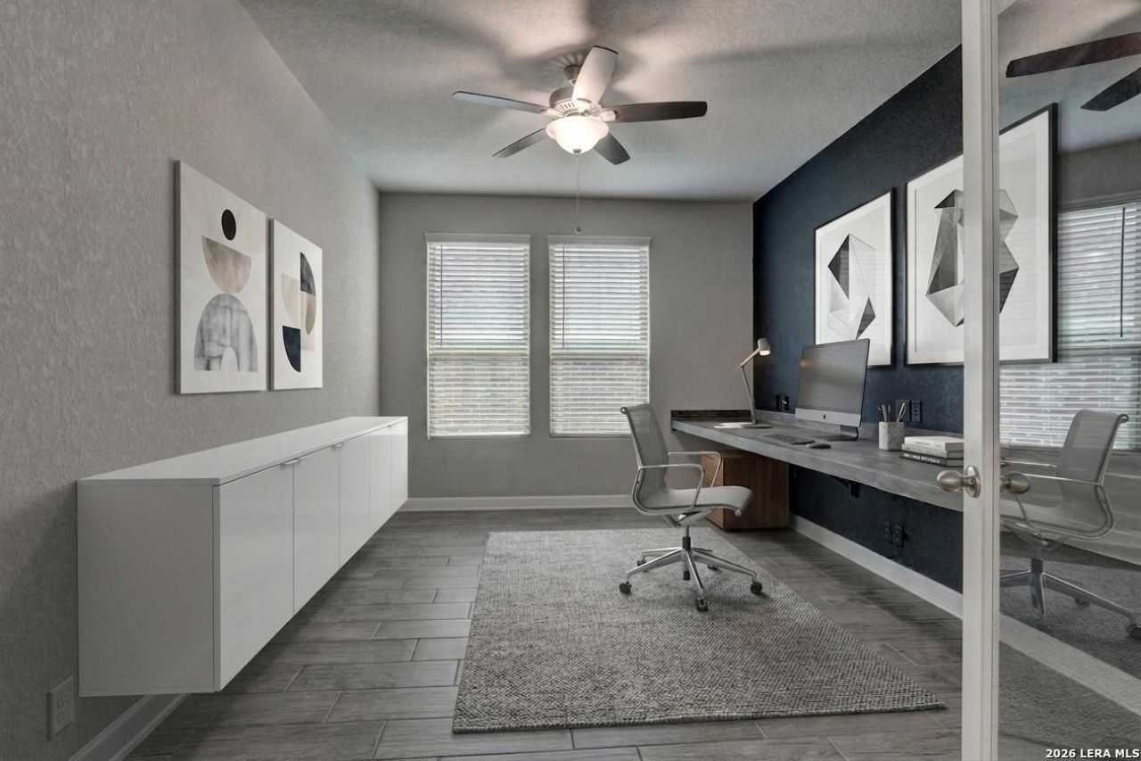 From the moment you arrive, the warm brick exterior and inviting entry create an immediate sense of welcome, leading you into a thoughtfully designed home where every space feels connected and intentional. Inside, wood-look tile flooring carries you through the main living areas and into the primary suite, creating a seamless, low-maintenance backdrop for everyday life. The open-concept layout draws you in, where the spacious living room, dining area, and kitchen come together in a way that feels both comfortable and connected, filled with natural light and ready for gathering. At the heart of it all, the island kitchen stands out with granite countertops, generous cabinetry, and a built-in appliance package including a gas range, while just nearby, a dedicated office with a custom desk and wiring offers a space thats as functional as it is convenient. Tucked away for privacy, the primary suite becomes a quiet retreat, complete with a spa-like bathroom, upgraded finishes, and a luxurious walk-in shower. The secondary bedrooms offer their own comfortable spaces, each with easy access to a well-appointed bath featuring granite countertops and a tiled tub surround. Just beyond the living area, the home opens to an oversized covered patio with a built-in bar top-perfect for relaxed evenings or weekend gatherings-overlooking a fully fenced yard with irrigation already in place. Thoughtful details like pre-plumbing for a water softener, enhanced network wiring, and added electrical for an electric vehicle and generator bring everyday convenience and peace of mind, all set in a location close to shopping and daily essentials. Please be aware some photos have been virtually staged