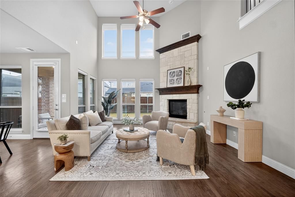 Located in the highly desirable Craig Ranch master-planned community, this beautifully maintained home at 5404 Gypsum Drive in McKinney offers the perfect blend of style, comfort, and convenience. Step inside to gorgeous hand-scraped hardwood floors that add warmth and elegance throughout the main living areas. The dramatic open-to-below living room fills the home with natural light and creates a grand, airy space perfect for entertaining.The open-concept kitchen flows seamlessly into the living and dining areas, making it ideal for gatherings and everyday living. Recent updates include brand new carpet, fresh interior paint, a new microwave, and dishwasher, giving the home a move-in ready feel. The kitchen comes fully equipped with refrigerator included, and the home also includes washer and dryer, providing added convenience for the new owner. Enjoy cozy evenings by the gas fireplace, while the home is also pre-wired for built-in speakers, perfect for creating an immersive entertainment experience. A practical mud room adds everyday functionality for busy households. Upstairs features three spacious bedrooms, along with a dedicated media room and private office, offering flexible spaces for work, relaxation, and entertainment. Located within walking distance to the community pool, residents of Craig Ranch enjoy fantastic amenities, parks, trails, and a vibrant neighborhood atmosphere. With easy access to major highways, shopping, dining, and nearby Frisco and Plano, this home delivers both lifestyle and convenience.