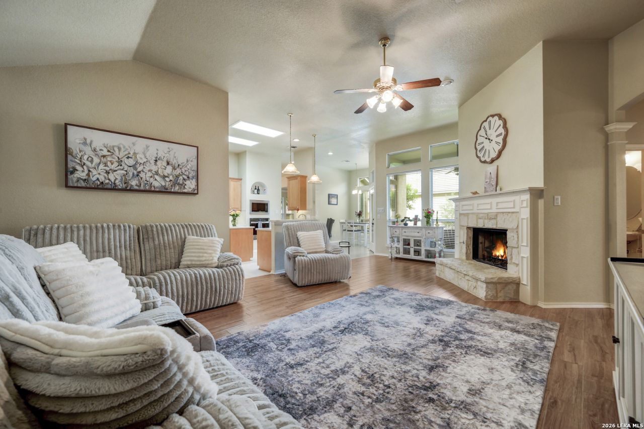 **Open House Sat 4/18/2026 11-2****Redefined living in Hollywood Park Set within the exclusive enclave of The Gardens of Hollywood Park, this sophisticated garden home offers a seamless blend of elegance, comfort, and effortless living. Designed with intention, the open-concept floor plan creates a natural flow between living spaces-ideal for both intimate gatherings and upscale entertaining. At the heart of the home, the chefs kitchen impresses with expansive solid surface countertops, an oversized island, and a generous walk-in pantry-perfectly suited for both everyday convenience and elevated hosting. Gas-ready connections provide the option for a true culinary experience. The owners suite is a private retreat, featuring soaring ceilings, a spacious walk-in closet, and a well-appointed bath designed for relaxation. A secondary suite with its own full bath offers refined accommodations for guests, while a versatile third space provides flexibility for a private study, additional bedroom, or curated workspace. Beyond the home, residents enjoy a tranquil, park-like setting with scenic walking trails, mature greenery, and the quiet charm of native wildlife. Golf cart-friendly streets enhance the ease of living, while nearby dining just beyond the gated rear entrance adds a layer of everyday convenience. Ideally positioned near Hwy 281 and Loop 1604, this residence offers both seclusion and accessibility-an increasingly rare combination.